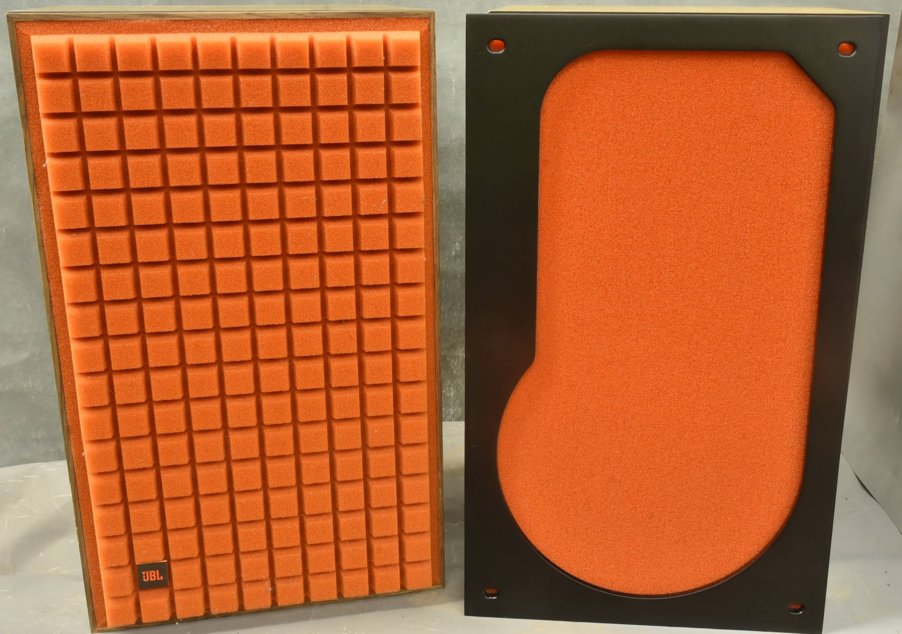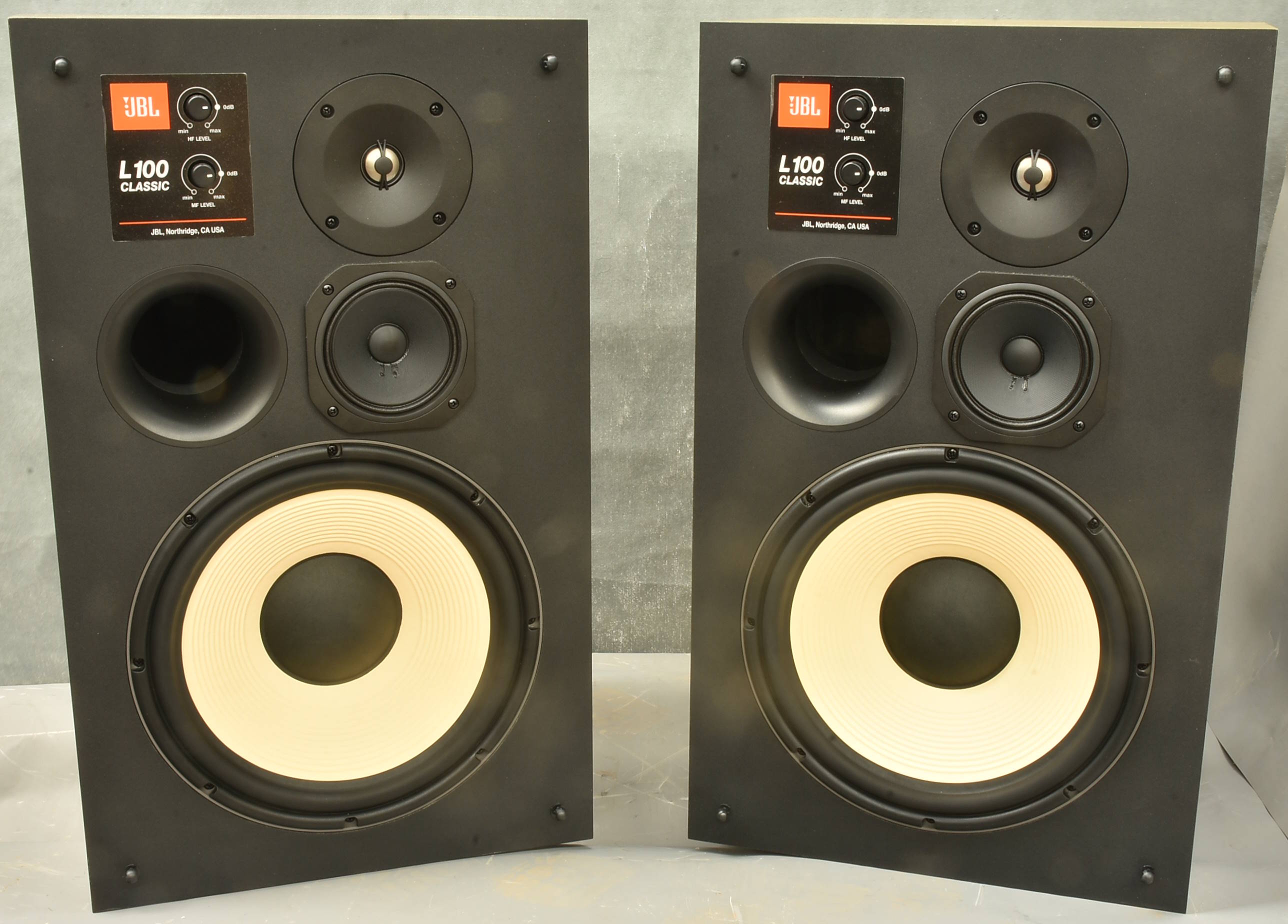 JBL's biggest seller worldwide was the JBL L100 from the early 70s. In 2019 they decided to revive the marque, with its distinctive grille foam (originally in orange but also available in blue). Internally they kept the basic 3-way structure, but used modern components of the same quality but with the benefit of nearly 50 years of research. The result was a pair of exceedingly solid, heavy mid-range monitors with a great sound. UK specialist magzine What Hi-Fi gave them five stars, even allowing for their huge (£3999) price. www.whathifi.com?reviews/jbl-100-classic . Now that JBL have introduced a Mk II version (whose main difference seems to be in the cable connectors), the few remaining Mk Is are still £2500 if you can find a pair. This pair have spent their pretty short life in a private studio, so have had little work. They have some odd marks from being moved around between rooms, but are generally pretty nice to look at as well as listen to. They come with an unused, packed set of alternative blue speaker grilles. Hifi News and most commentators think that to get the best from these speakers they should be mounted away from walls, and ideally on stands. Stands are available from stock in most countries (eg £265 from premiumsound.co.uk) or VEMIA have a pair of stands which might do the job much cheaper - see a later lot if we can find them. Packing 48GBP - these are super-solid and will need three cartons. |