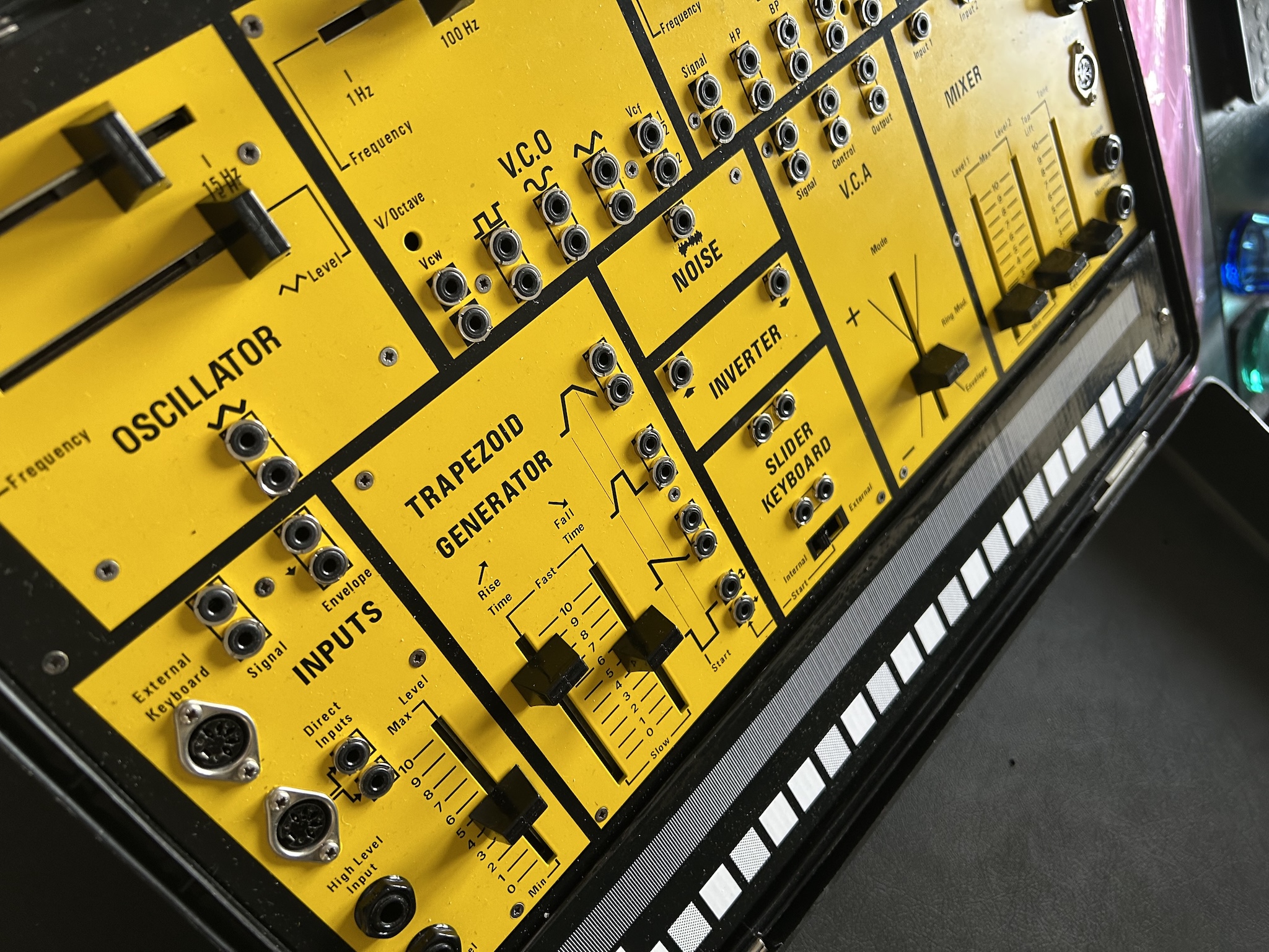 This special Synthi-E was in prior use by a music school for the blind and the panel was damaged by the sign language stickers hence we decide to be serviced. It just came back from service from EMS experts Portabellabz (Invoice included)