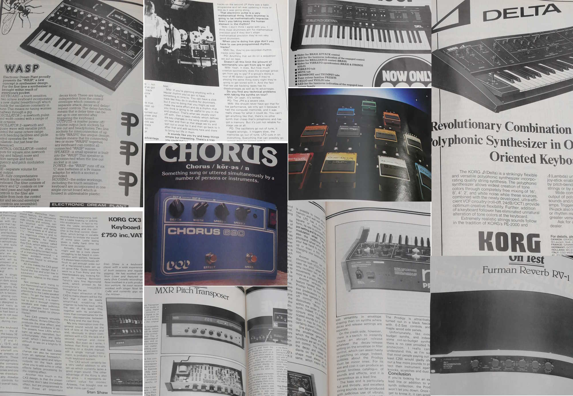 This is a set of International Musician and Recording World magazines in an original optional (and expensive) binder. They are in very good condition, with virtually no notes, or coupons cut out. There is some 'slump' to the pages where they have sat upright in their binder, and probably some dust on top. IM&RW was one of the first magazines produced for the musician and recording studio person. There is a broad range of material covering guitars, amps, keyboards, mics, effects, recording gear, etc.. They were used for research on various books and articles. Please see the photos for an idea of what is included. I've concentrated on synth- and FX-related items in thumbing through taking photos, but there is a lot else of interest. This set of magazines runs from December 1979 to September 1980 inclusive. As the mags increased in size, they had to increase the size of the binders, too.