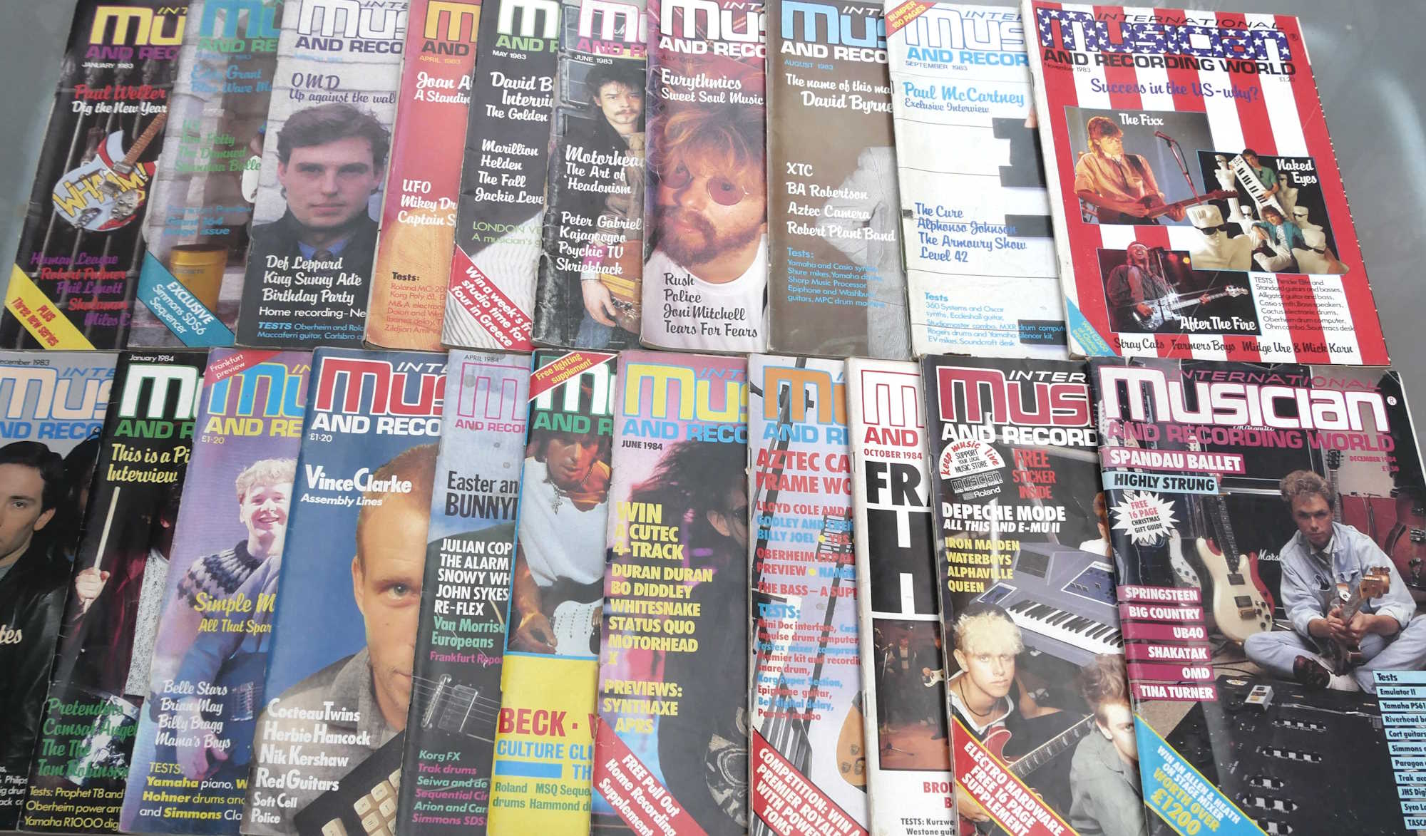 This is a set of International Musician and Recording World magazines. They are in very good condition, with virtually no notes, or coupons cut out. There is some 'slump' to the pages where they have sat upright in a magazine holder, and probably some dust on top. IM&RW was one of the first magazines produced for the musician and recording studio person. There is a broad range of material covering guitars, amps, keyboards, mics, effects, recording gear, etc.. They were used for research on various books and articles. Please see the photos for an idea of what is included. I've concentrated on synth- and FX-related items in taking photos, but there is a lot else of interest. This set of 21 magazines runs from January 1983 to December 1984, with Oct 83, Jul & Aug 84 missing. Each set is pretty heavy - weights range from 3kg to over 5kg. This set is 6.6kg with just a cardboard magazine holder. Packing is 6GBP for one of these IM&RW sets, but another set bought would then have free packing. |