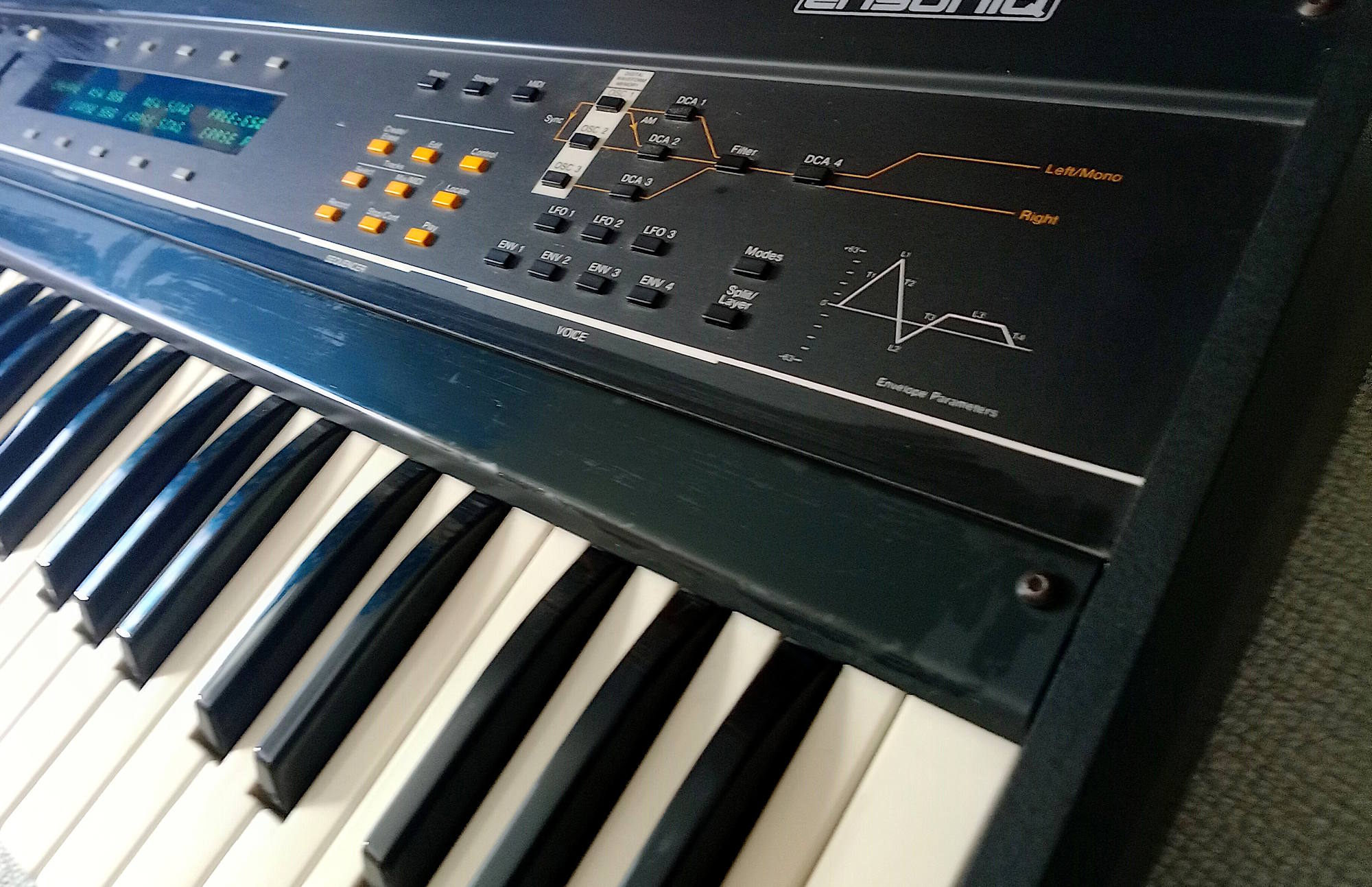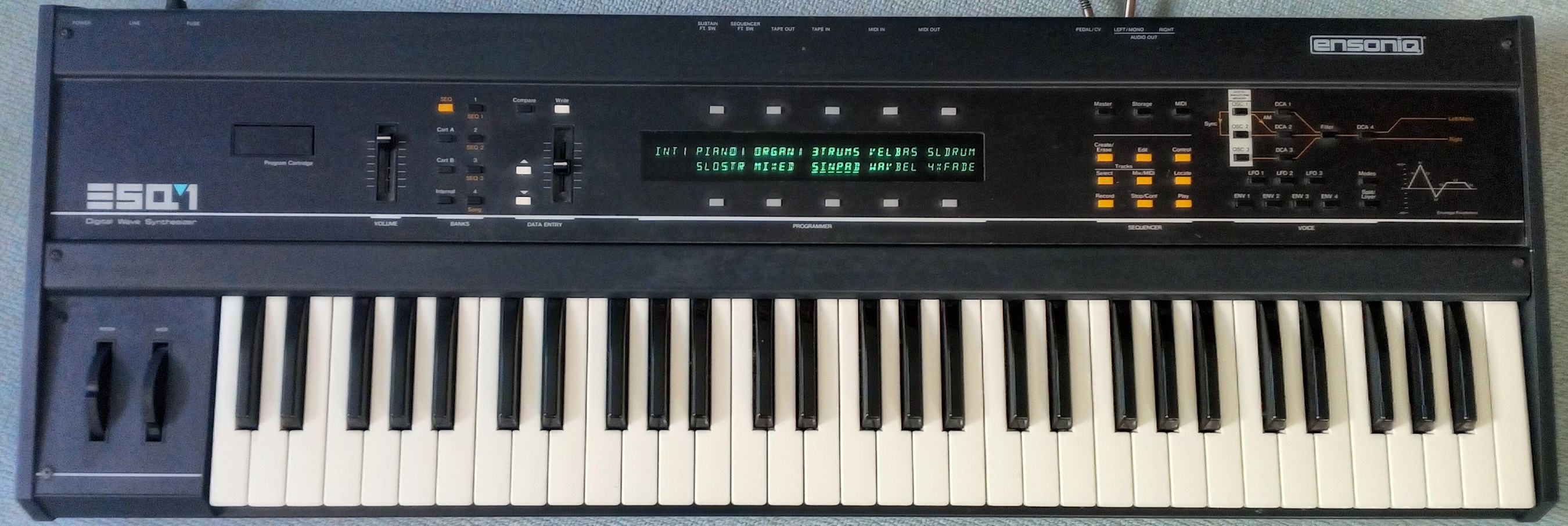 This is the metal-case version of the ESQ-1 so it's built like a tank. Comes with the original Ensoniq flight case as pictured, plus the original manual and a third-party memory cartridge that holds 80 sounds.