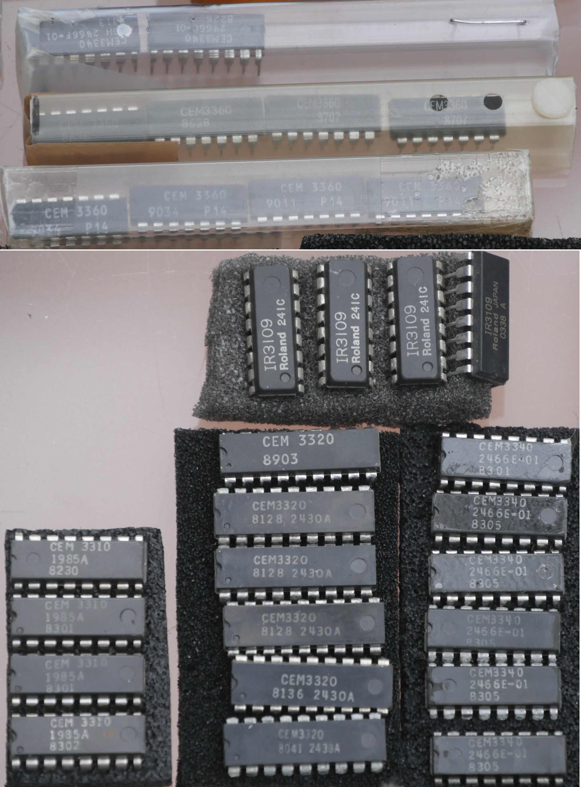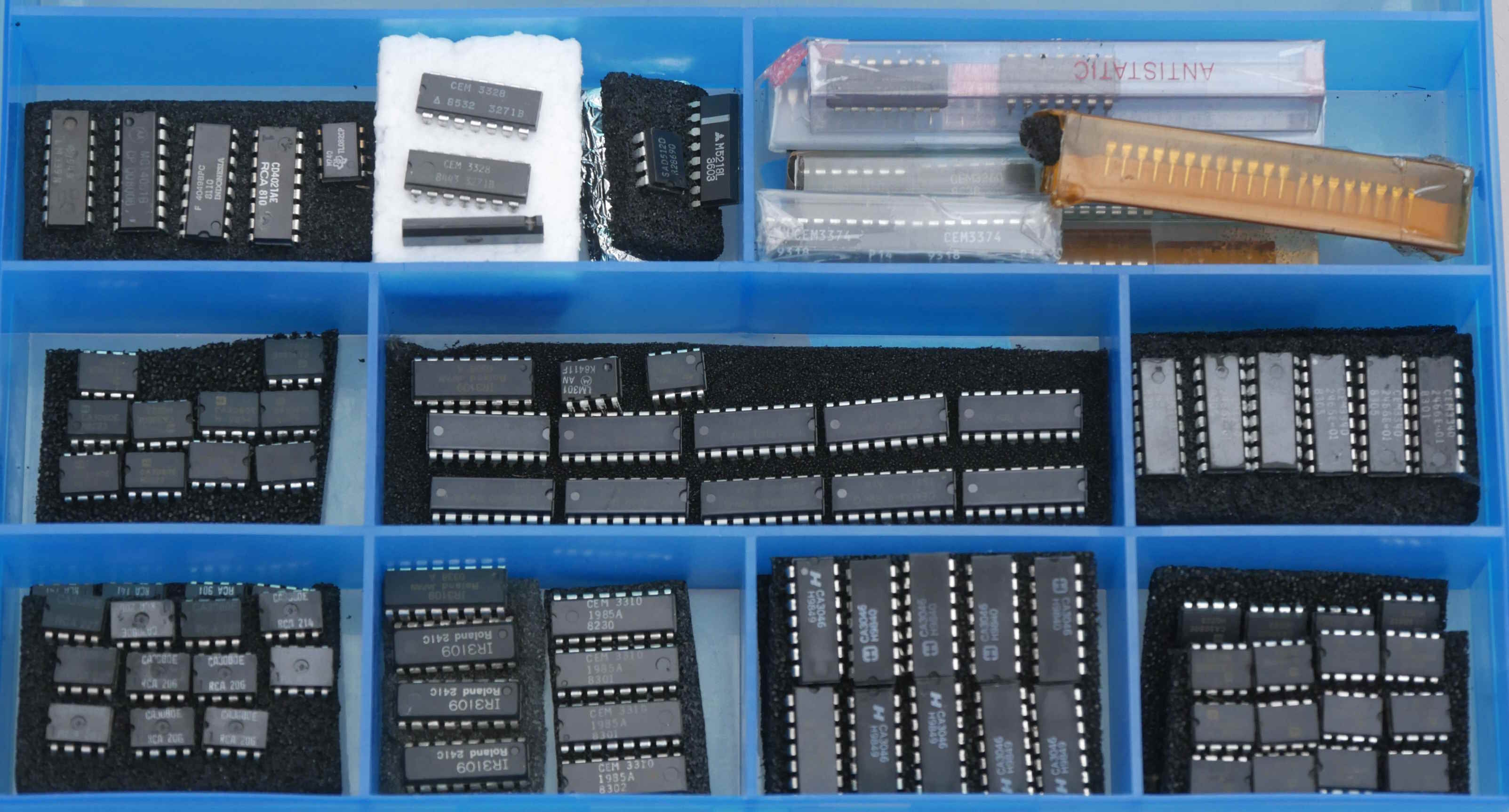 This is an incredible lot of original, genuine sought-after synth chips, the rest of the complete stock of parts from an enthusiast who has now sold his entire synth collection on VEMIA.The list is pretty amazing: