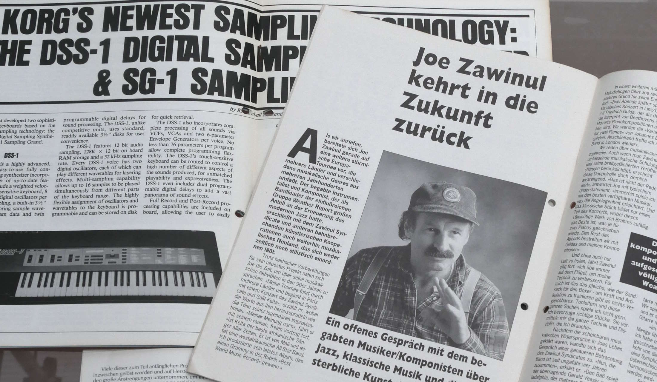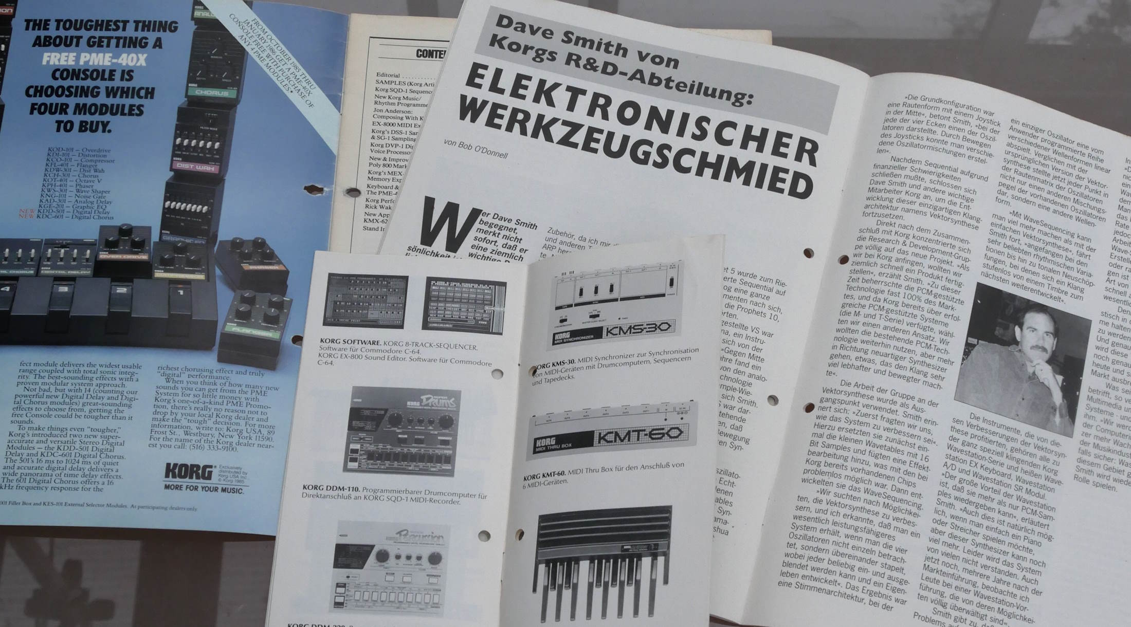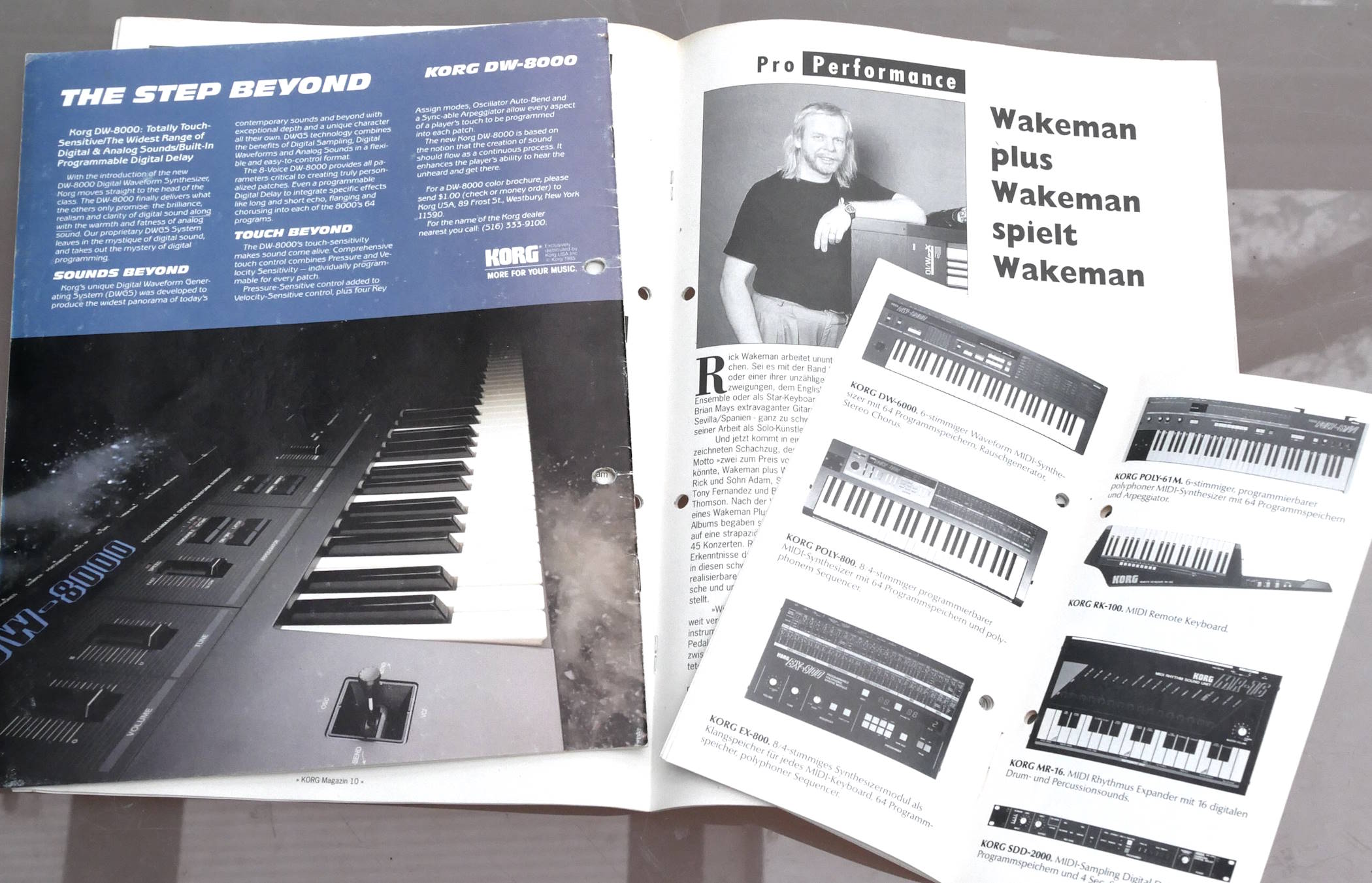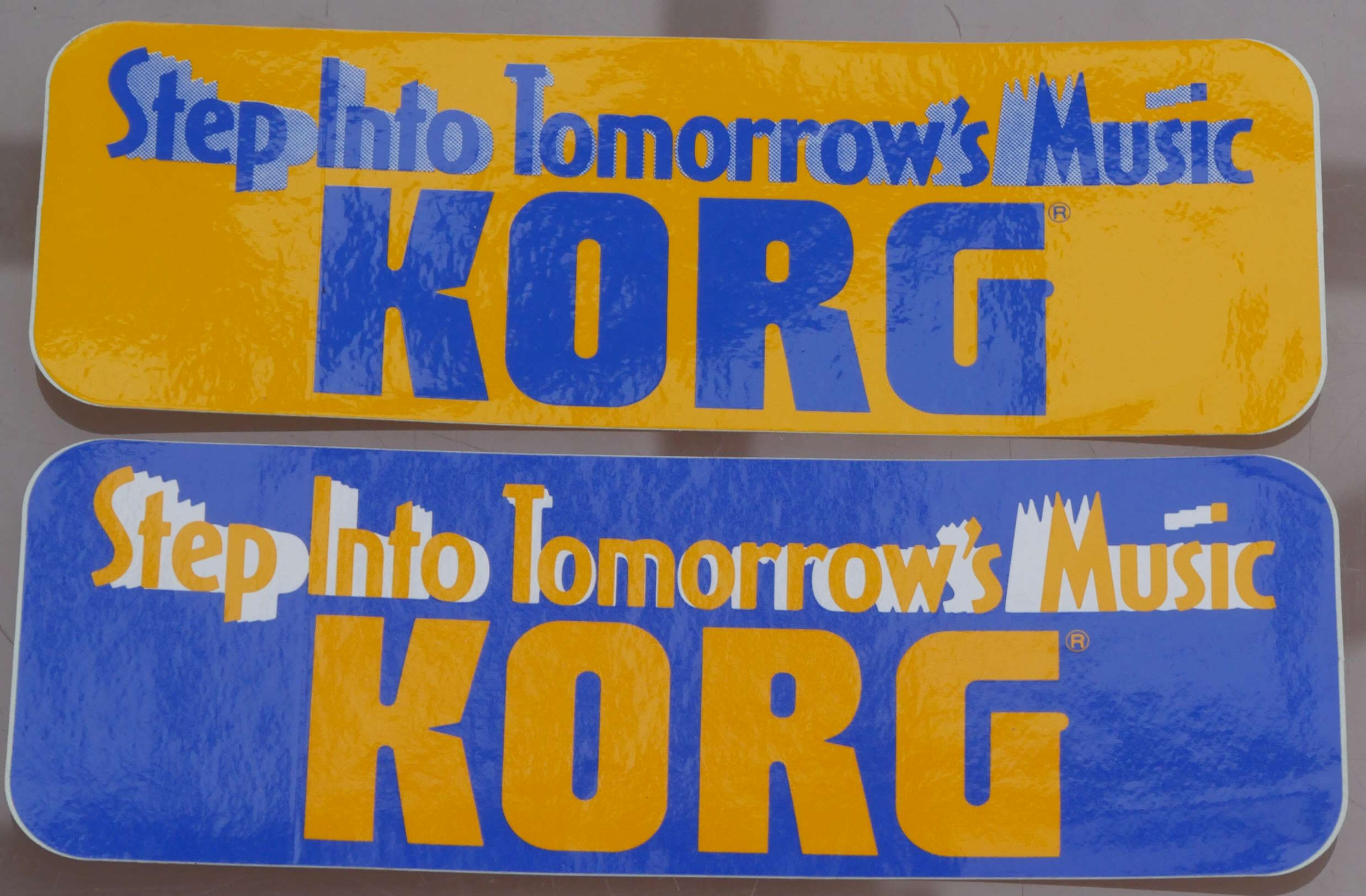 Korg Patches, Korg Magazin (German), Korg Goes MIDI, and two unused promotional stickers. The stickers are very good condition, the other things less so, with holes punched. |