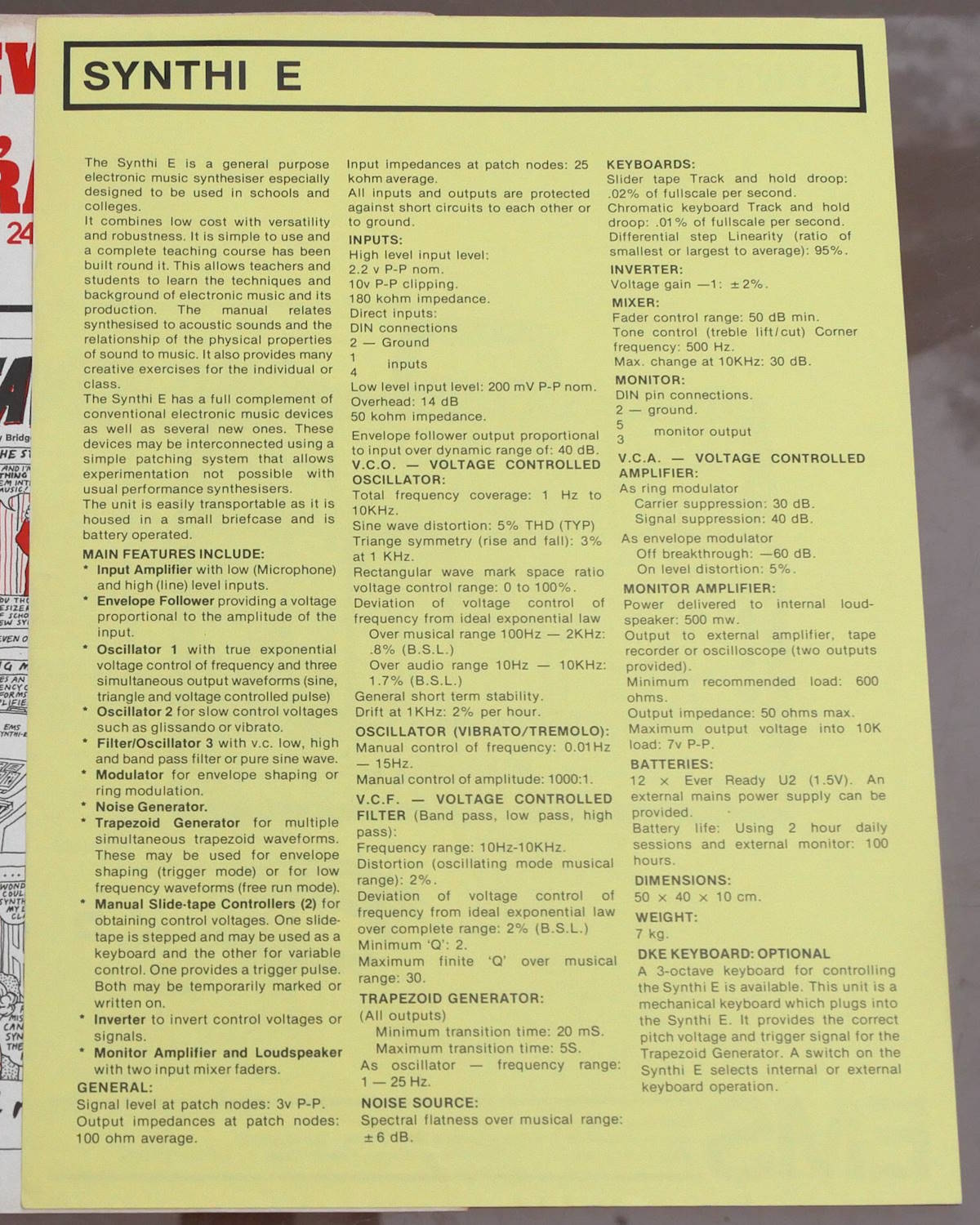 Synthi-E leaflets, mid 70s |