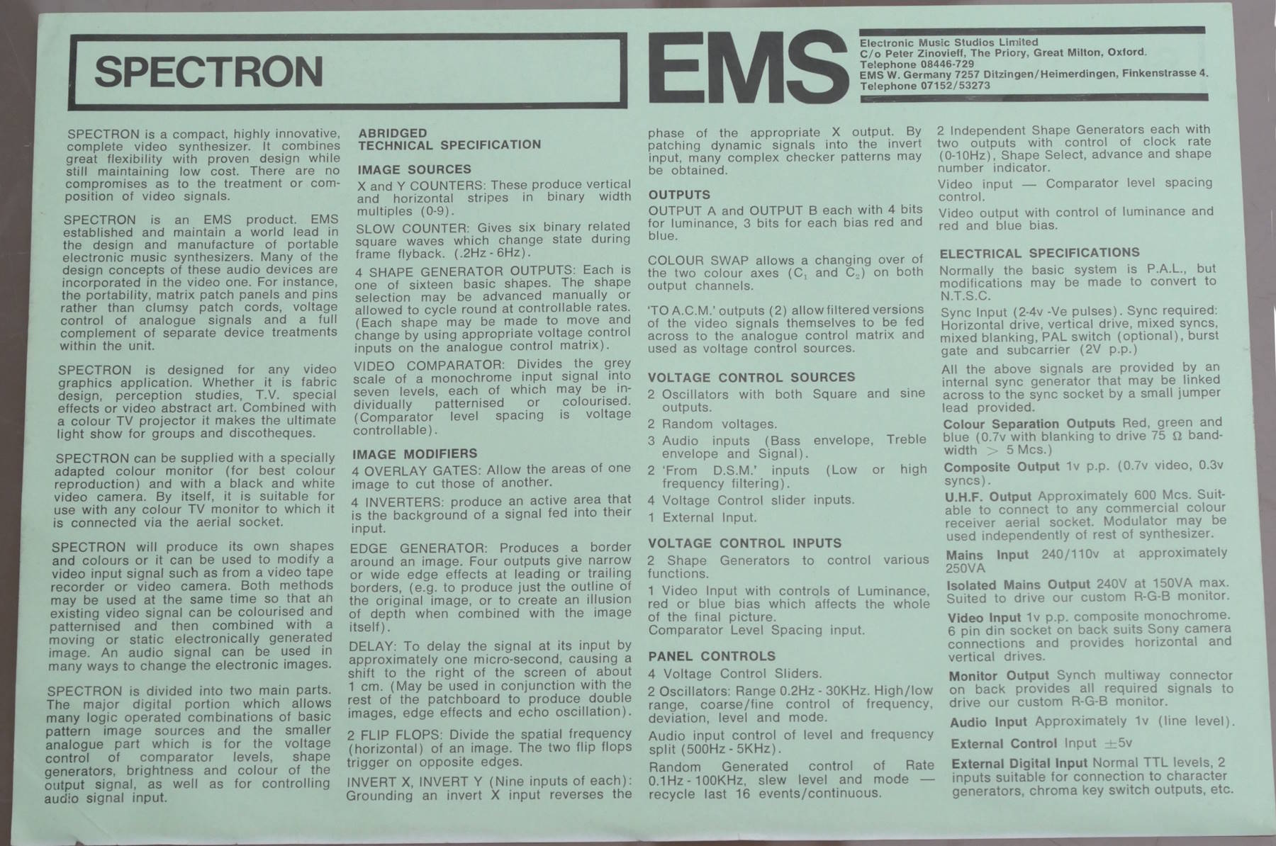 Rare flyer for EMS' ground-breaking analogue video synthesiser. |