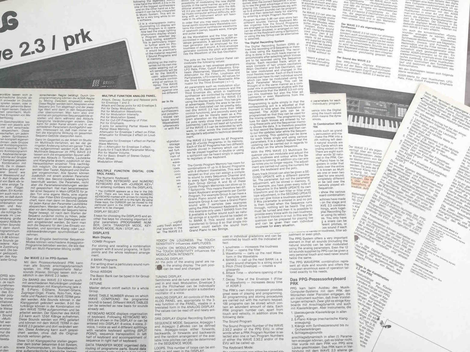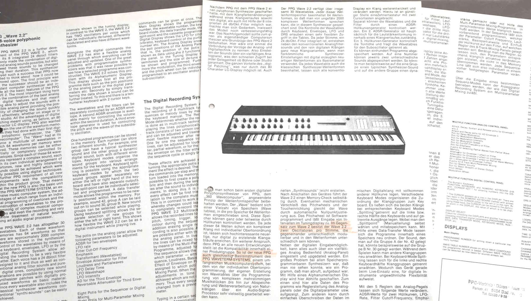 Rare original leaflets for the PPG Wave 2, 2.2 and 2.3 / PRK. These have hole-punches and a bit of highlighting, but are otherwise in very good condition. |