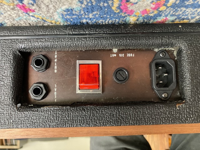 The classic string machine. This one is a Hohner but it's identical to the more common Logan String Melody 2. This has had various modifications carried to it by Tony at OakleySound. There is a new dedicated output volume control on the front panel, as well as a vibrato modulation depth control. The latter alters the amount that the 6Hz modulation LFO affects the triple BBD circuitry, So you can change from a simple chorale effect, through to the classic Logan ensemble sound, all the way to a very obvious detuned effect. The power supply has been rebuilt and a vent added to reduce the internal temperature. A standard IEC power inlet has been added to the rear panel. Other mods have been done to reduce the amount of hiss. The unit comes with the rare original top cover. Cosmetically, the unit is in fair condition, It's very clean but there are some scuffs to the outer covering, and various dings in the original veneer. The eight level sliders crackle slightly when moved, and the sliders are rather stiff. All features work as they should. A superb sound. |