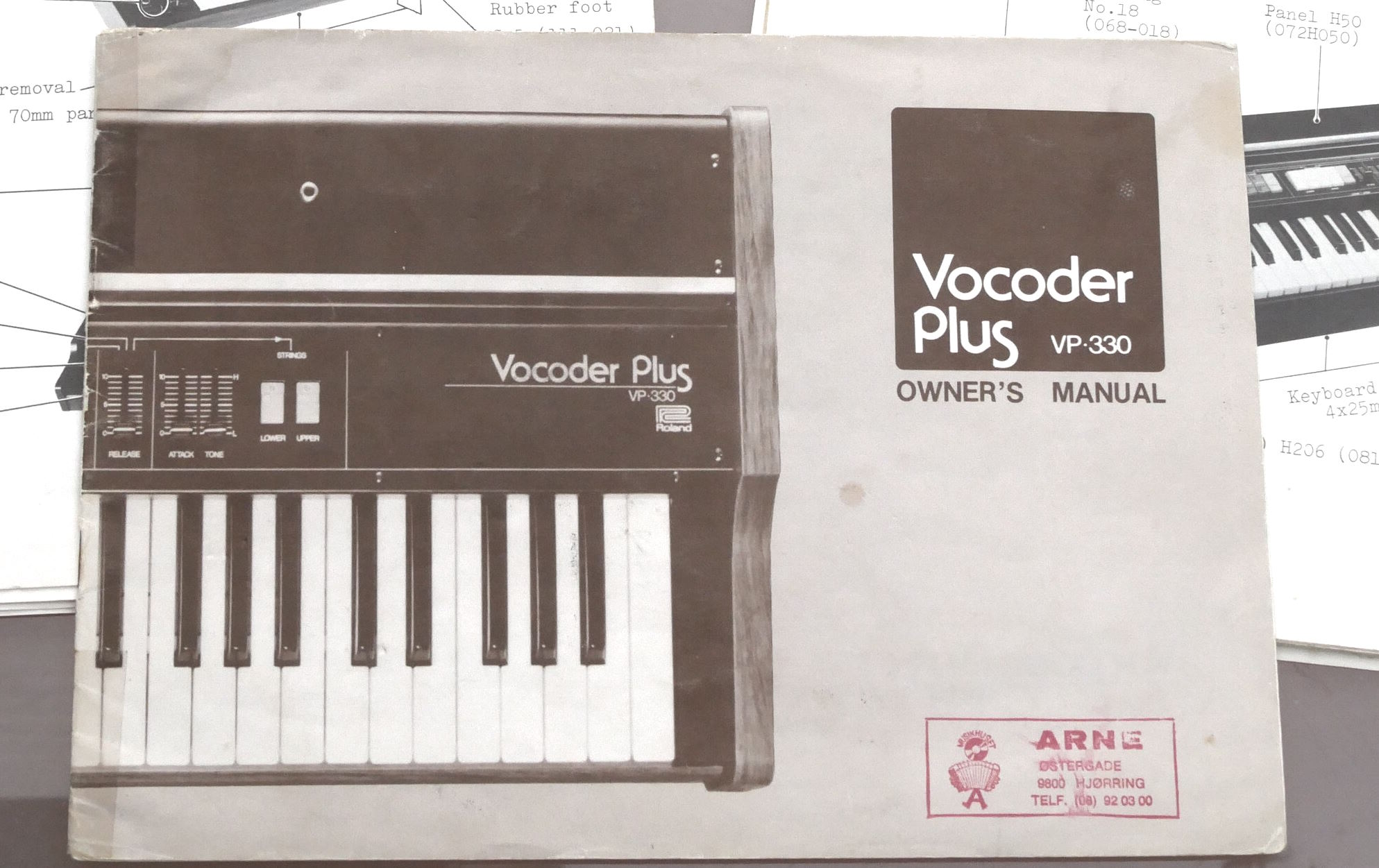 The fairly slim user manual for the VP-330 Vocoder Plus from July 1980 - with photos of the second version but applicable to the first as well - and the much more substantial sets of service documents for the version 1 (Sep 79) and version 2 (Oct 80). Lots of fold-out pages, generally in very good condition. It looks like someone put a soldering iron down on the back page of the v1 notes, but the burn marks and small hole don't seem to have obscured anything at all important. |