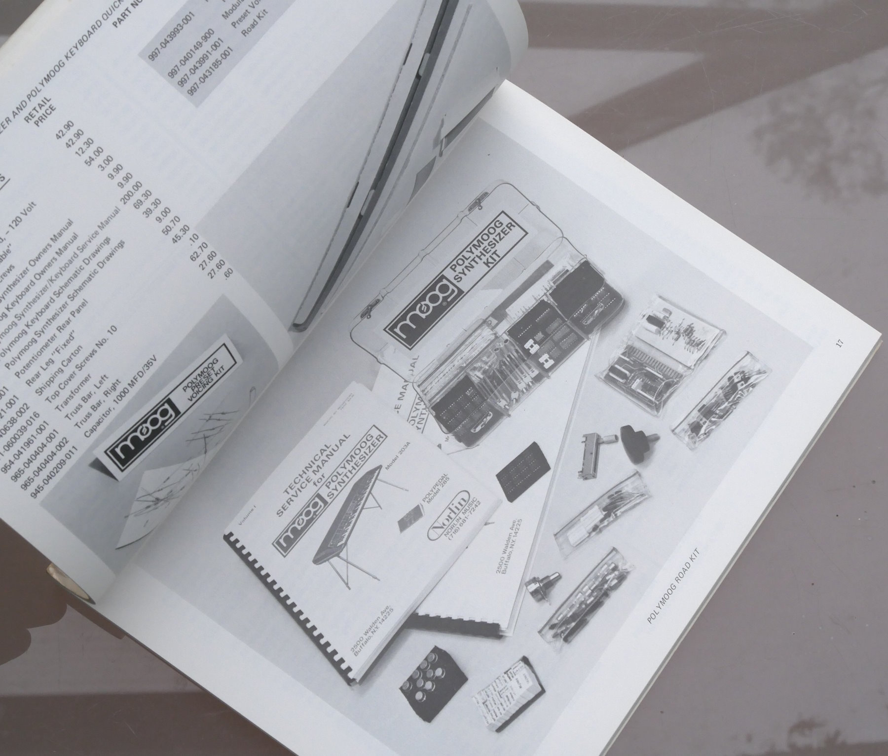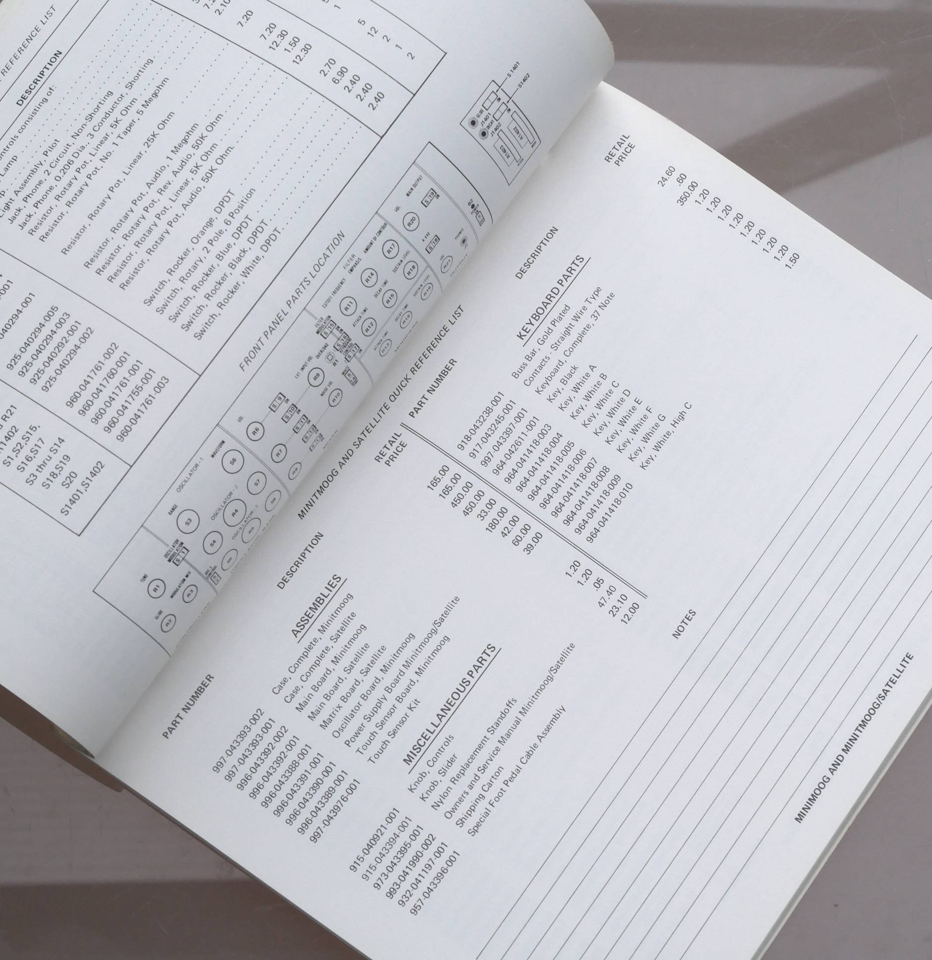 For some reason (Norlin?) Moog big up Cordovox, Gibson, Maestro, Epiphone etc on the cover, but more of this 100-page parts catalogue is actually about Moog - the Minimoog, the Minitmoog / Satellite, Polymoog, Prodigy, Sonic VI, Synamp, Taurus. A massive resource. In super condition, looking virtually unused. |