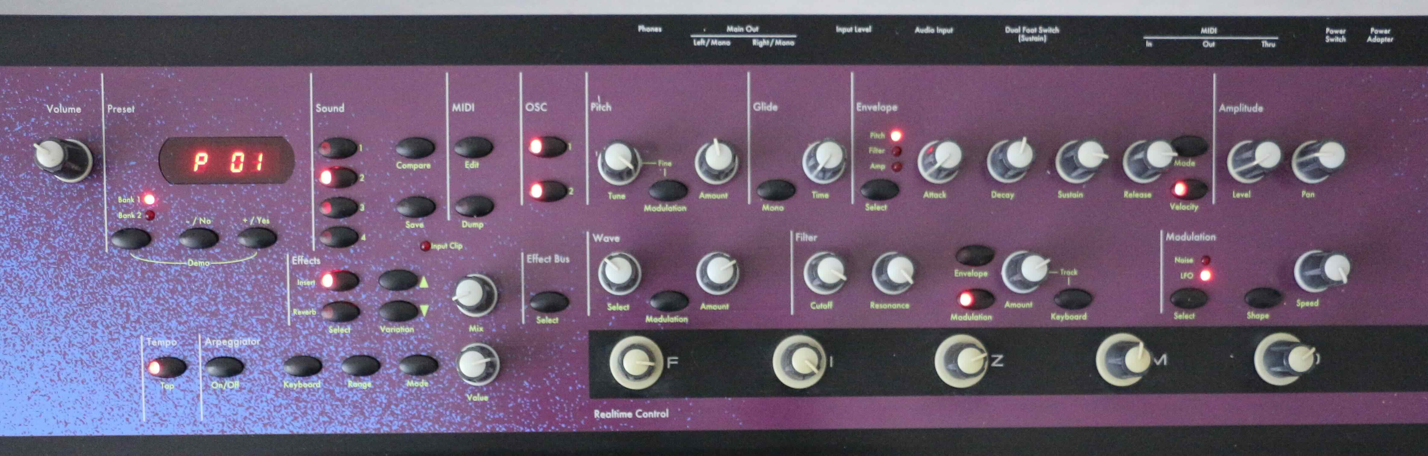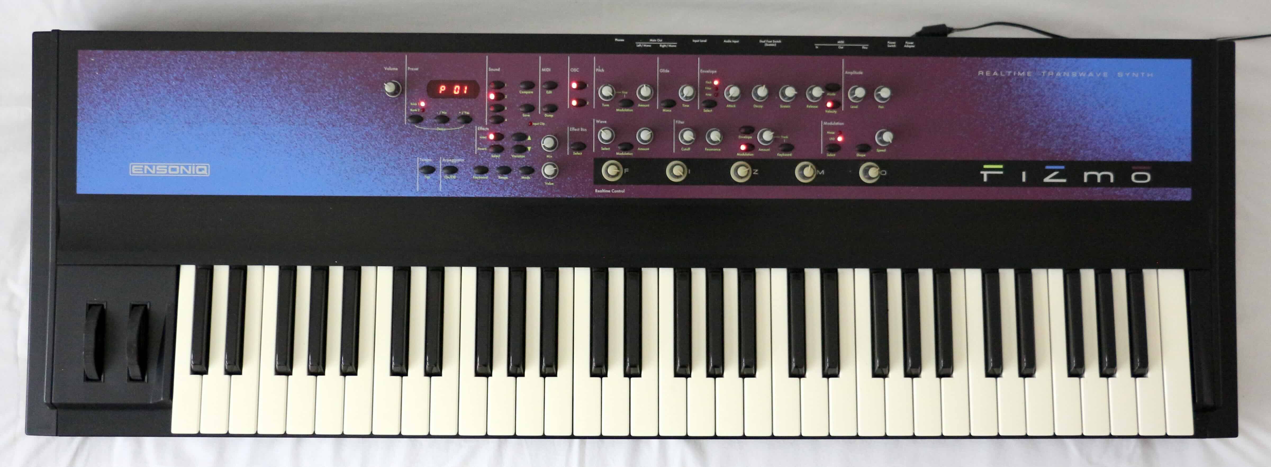 Ensoniq's swansong, the FIZMO is an incredibly rare and highly sought-after 48-voice synthesizer which uses 2nd-generation Transwave technology to create very organic sounds unlike any other synth available. The top panel is festooned with realtime controls for many of its features, including the unique and quirky 'F I Z M O' knobs which alter various parameters per patch. It is most revered for its ability to create immense textures and soundscapes, often from just a single note.