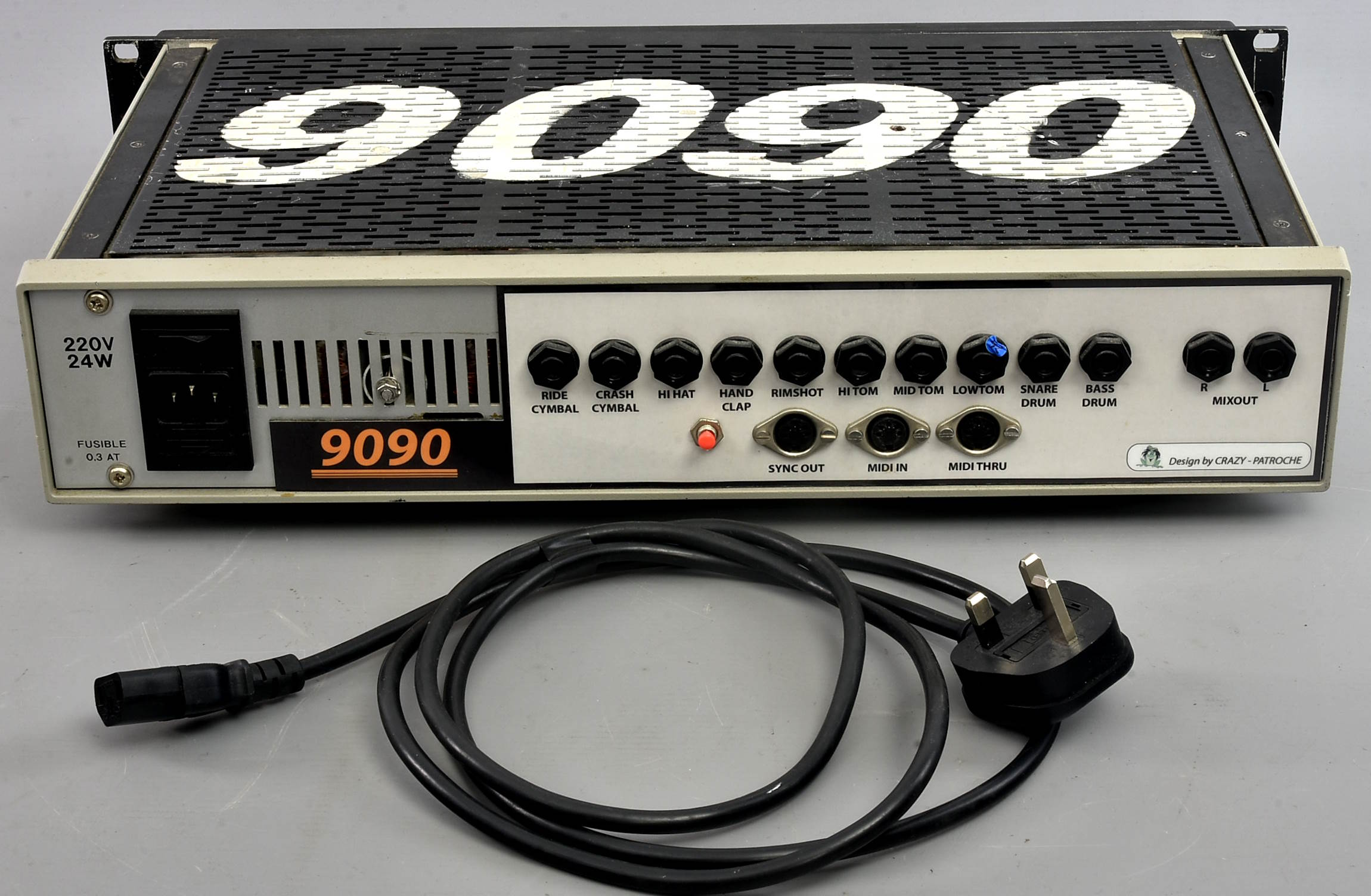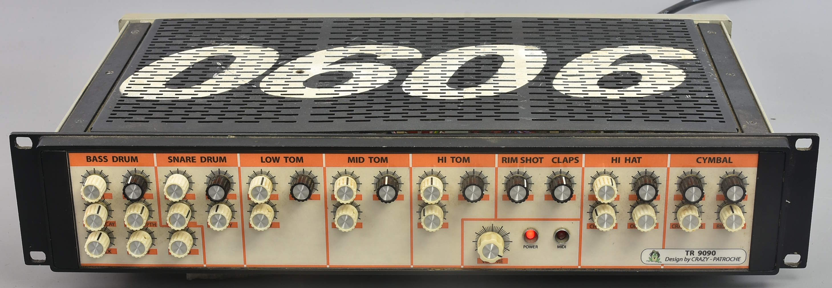Very interesting TR-909 clone, apparently made from a French kit. Actually, this actual machine looks absolutely identical to the one featured on Crazy Patroche's website - so the one he made, rather than one made by others from the kit? Unfortunately it needs some work. Here's our tech James' report:. Random hum cuts in and out. Snare sound faulty, no body and snappiness. One of the tuning pots perhaps wired backwards, clockwise tunes down. Still a great and presumably fairly simple project.