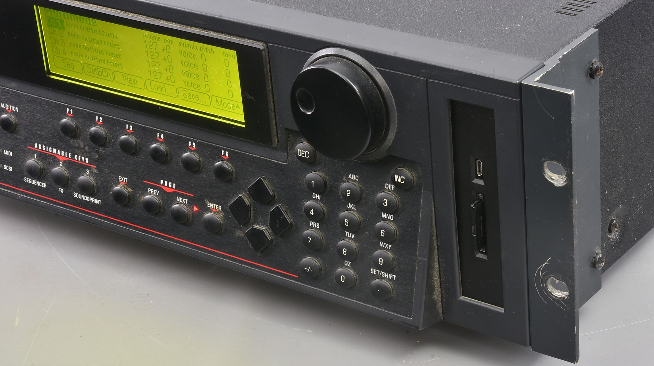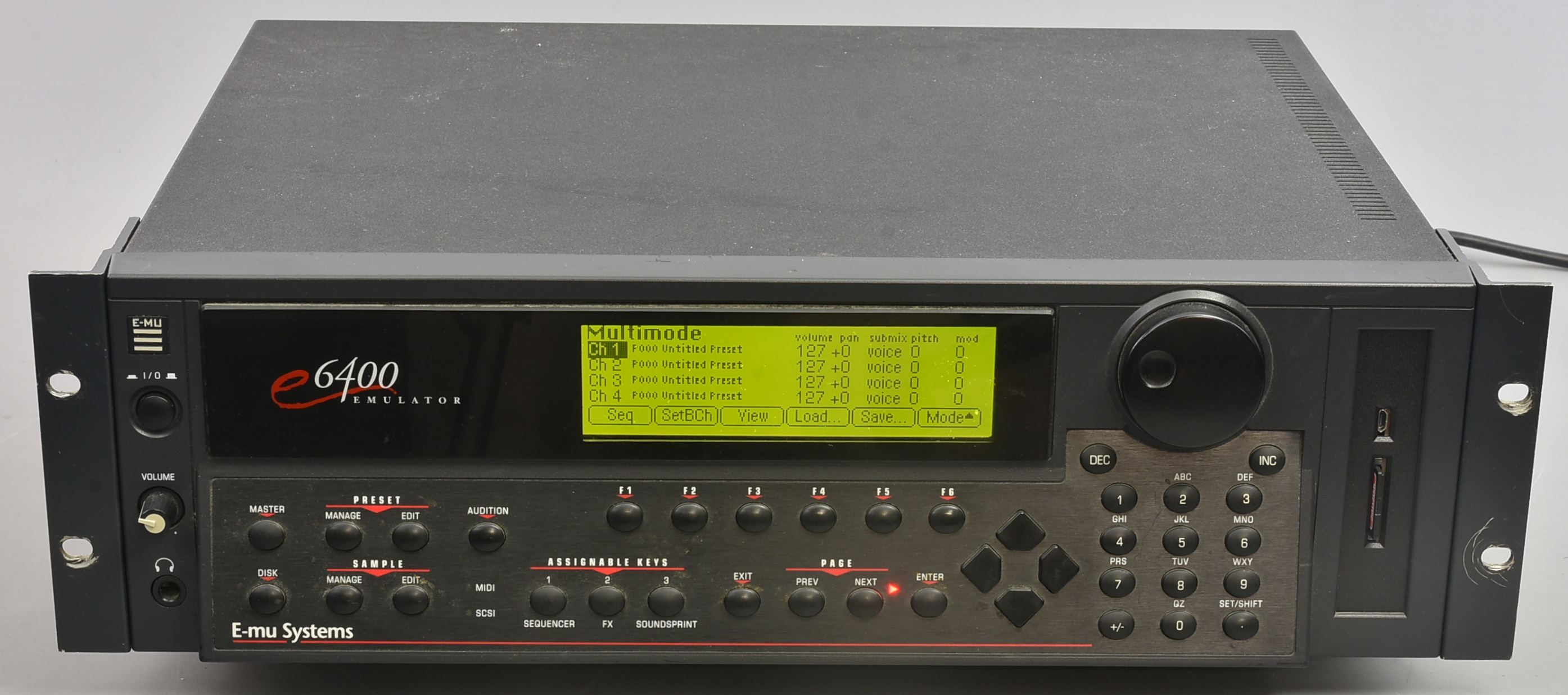 One of very many items from Calum Hunter's superb home studio. This is the standard version of the E6400, but with a ZuluSCSI USB card reader (card included). At the moment there is nothing on the card but we will hope to remedy that. Universal voltage. ***In a studio with subdued lighting the display is far too bright. In daylight it's fine. Not sure how to adjust it if it's possible.*** Provide your own IEC mains lead. Packing 9GBP. |