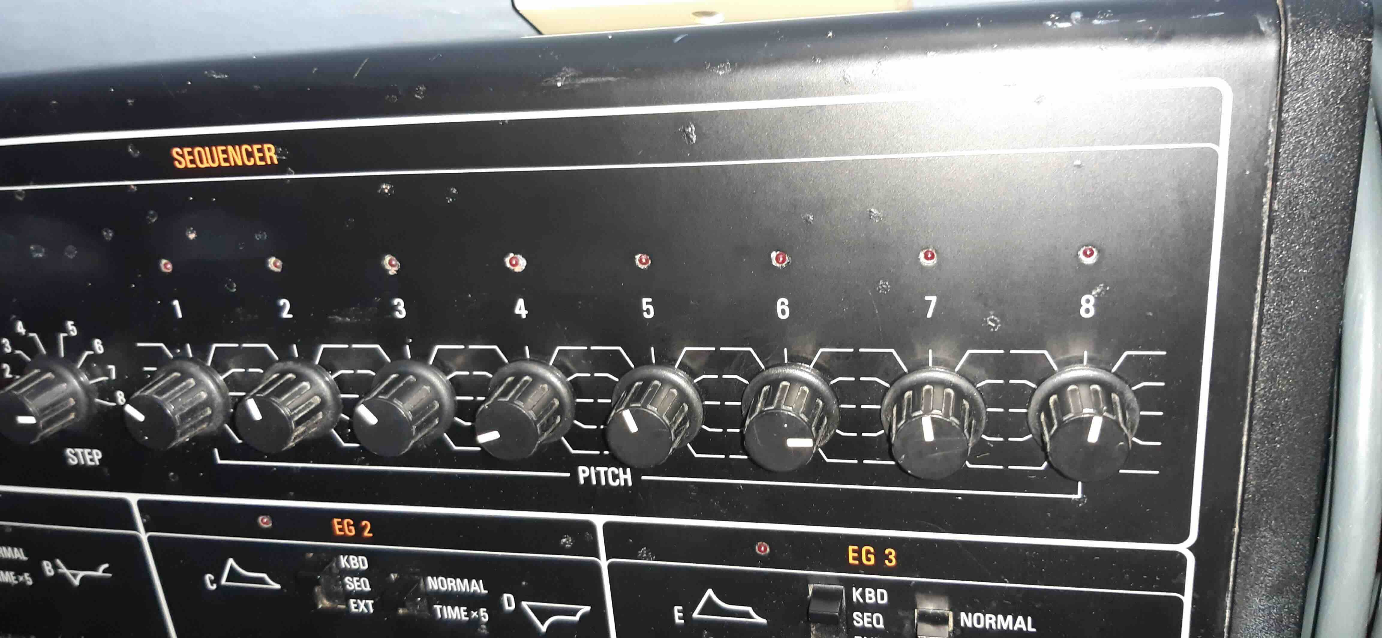 This one plays and sounds great. The synthesiser responds to all the pots and sliders as it should and it's ready to use and create weird and wonderful noises and textures. However, to get it to 100 percent functionality the synth requires a service to fix a few issues. Neither the combined 1+2 audio jack nor headphone output work, though the individual 1 and 2 jacks are fine. The sequencer works when switched to Manual and steps through by pushing the red button. However, the 'Clock' function only works when the synth has been powered on for a while and has 'warmed-up'.
