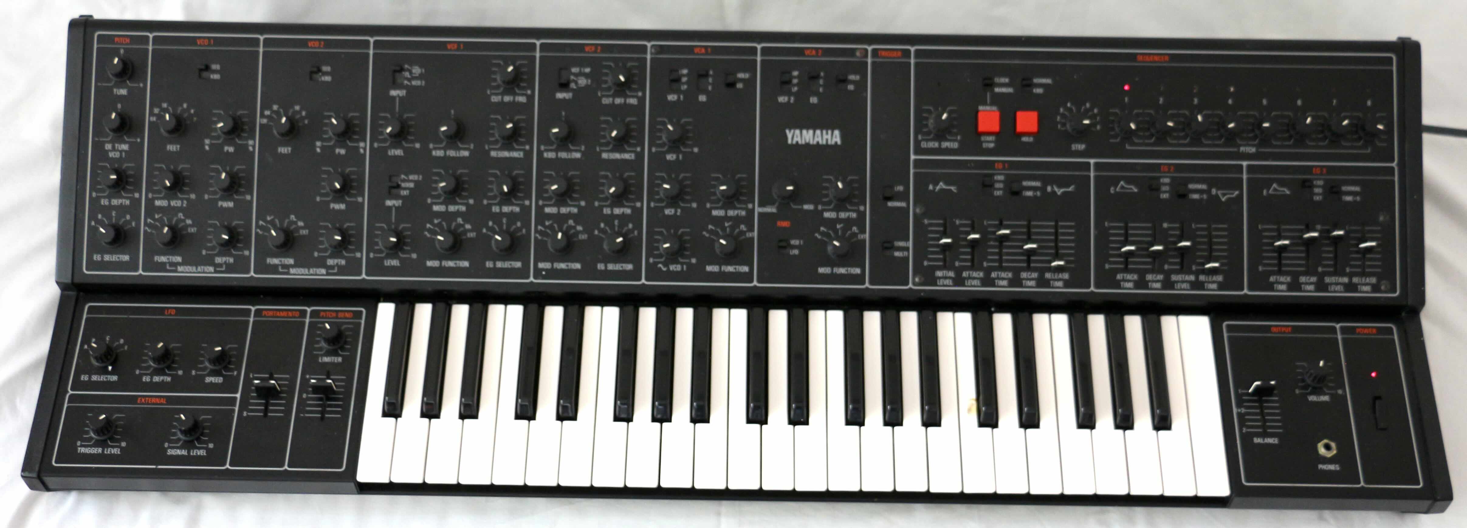 It is fairly unusual for a hard-wired synthesizer in that it features a variety of switches which allow the user to re-route the signal flow from the usual VCO-VCF-VCA convention. For example, VCO 1 can output a square wave through VCF 1 whilst also outputting a high-pass filtered sawtooth wave through VCO 2. Another example is that the envelope generators can be assigned to any of the VCO, VCF and VCA modules and can also be inverted. Because the LFO is voltage controlled, the oscillating speed can be governed by an envelope generator and different waveforms can be applied to the other modules all at the same time. The CS30 also features an external signal input for filtering other musical instruments and audio sources, which can also be used as a modulation source. It includes an onboard eight-step analogue sequencer.