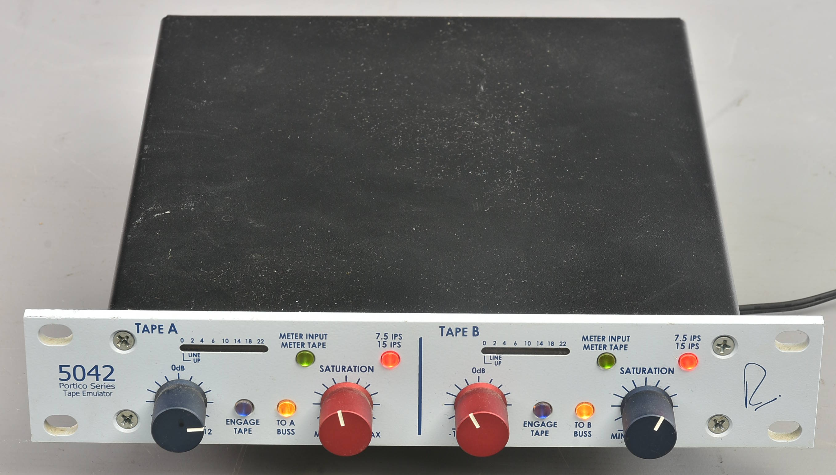 One of very many items from Calum Hunter's superb home studio. Disappointingly for a fairly recent bit of gear, this needs servicing: the latching switches on the front don't latch reliably, so functions can't be engaged! Well worth servicing, though, if you want high-quality tape emulation (this item was well over four figures GBP new). Packing 6GBP. |