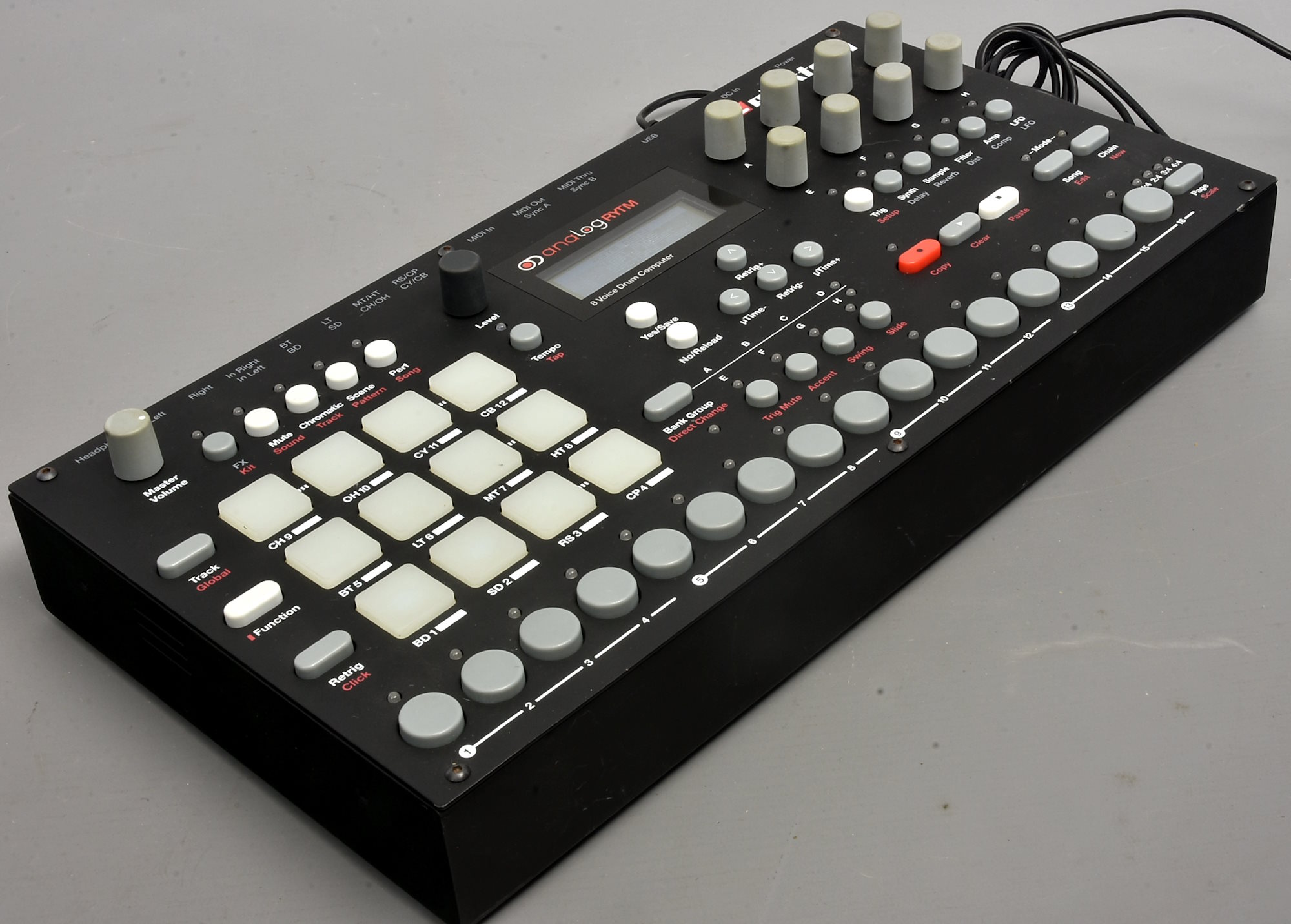 Very little-used original version of the Analog Rytm in very good condition. With external power-supply using a detachable figure-of-eight lead, so easy for any country. UK lead currently included. Packing 6GBP. |