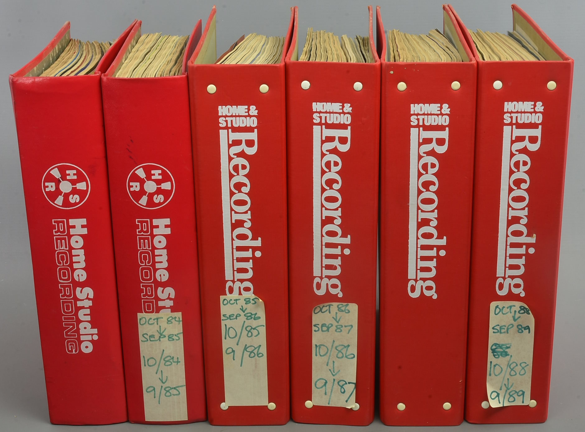 Six original binders full of Home & Studio Recording magazines from September 1983 to September 1989. With some messy labels that will peel off easily, we think - it looks like two have fallen off of their own accord. Packing 9GBP. |