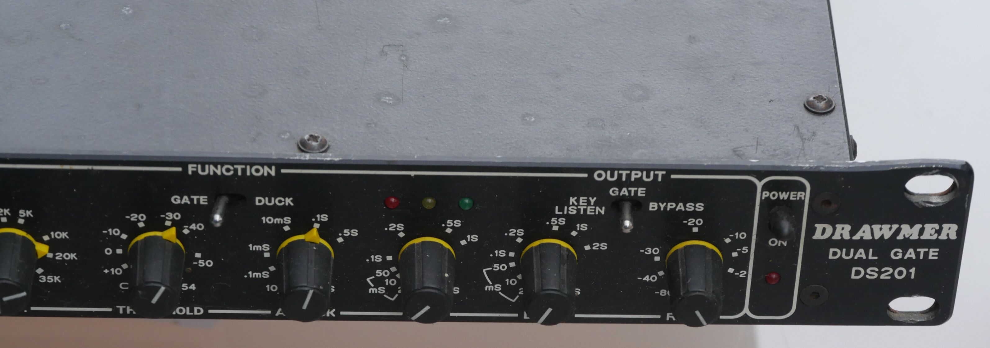 A nice DS-201 dual noise gate from September 95 - actually a DS201B, which presumably refers to this being the superior version with XLRs as well as 1/4 in jacks. An absolute industry standard, and still available at a list price of 950GBP. Solid and beautifully made like all Drawmer gear. We haven't had a chance to test this so it is sold AS IS. Cosmetically it would look near mint in the rack. The one 'blemish' in the photo of the front is actually a bit of fluff we failed to spot. Packing to include a UK or Euro lead 9GBP. |