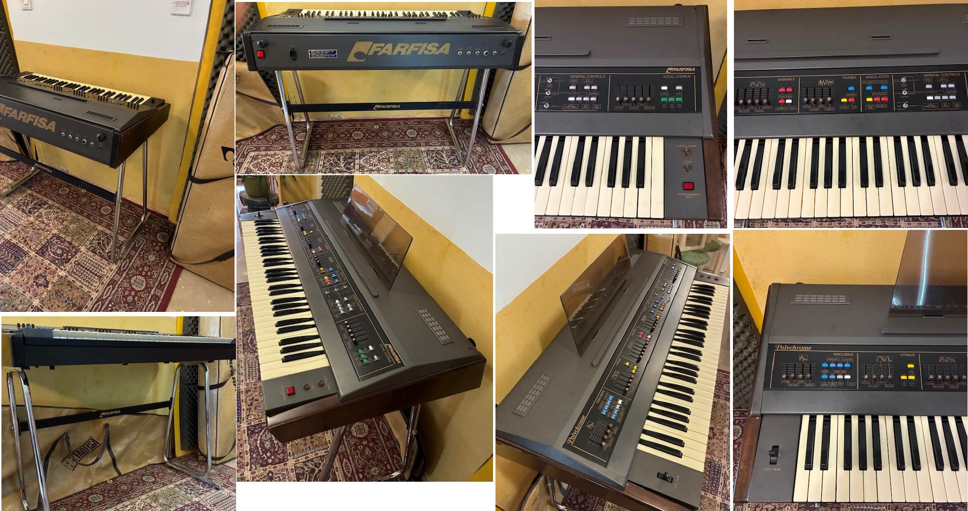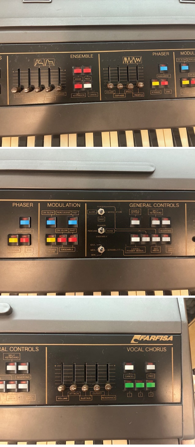 Extra-rare and very lovely Farfisa Polychrome, fully serviced by James Walker in October 25 ready for this auction. Complete with legs, music stand, and the original Farfisa bags for the synth and legs, also in very good condition. One switch top in the photo is a dummy - the correct item hadn't arrived when the photos were taken but has now. [VEMIA note: this is actually the third - CORRECTION fourth - Polychrome we've ever had in VEMIA, in 29 years. That tells you something! ] We can collect and pack: 48GBP. |