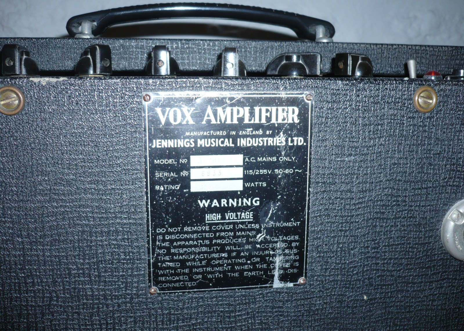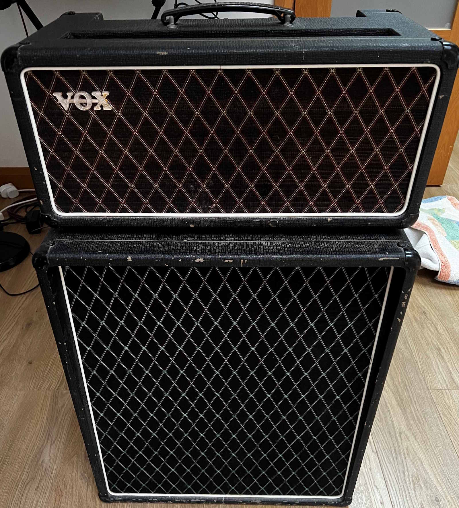 Vox AC50 1965/66: The Jennings years, with 1X18 Foundation bass cab plus throwing in a custom built 2X10 cabinet used for a more sparkly sound when using with guitar.