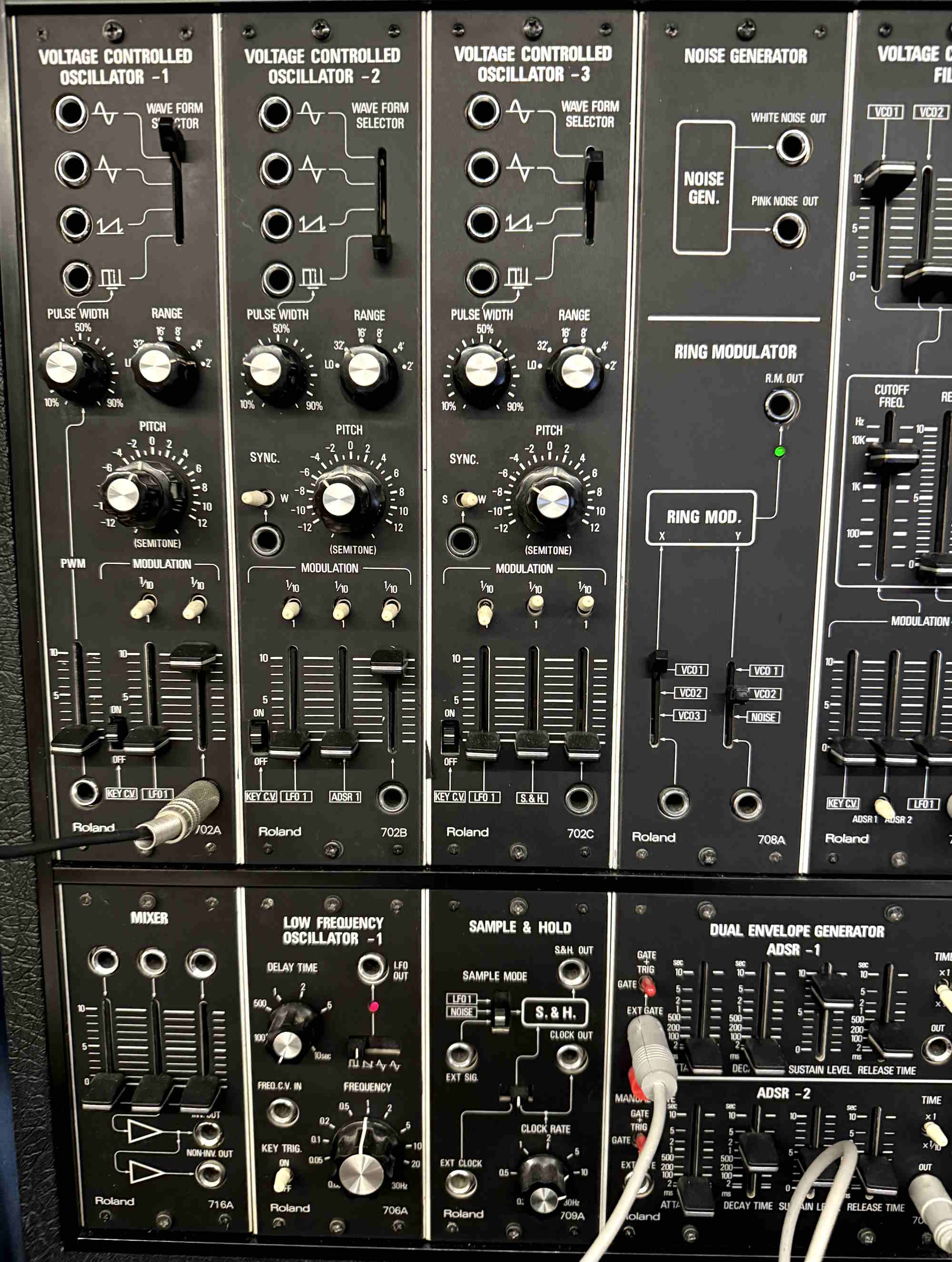 All the best Sys 700 modules, featuring the iconic vintage Roland tone — warm and incredibly dynamic — and offers an extraordinary range of sonic possibilities thanks to its flexible patch architecture. Perfect for collectors, professional studios, or synth enthusiasts looking for a centerpiece instrument with historical and musical significance. The system sports a comprehensive modular architecture with 3 oscillators, 2 filters, 2 VCAs, 6 envelopes (!), mixer, phaser, spring reverb (HUGE) and …utilities.