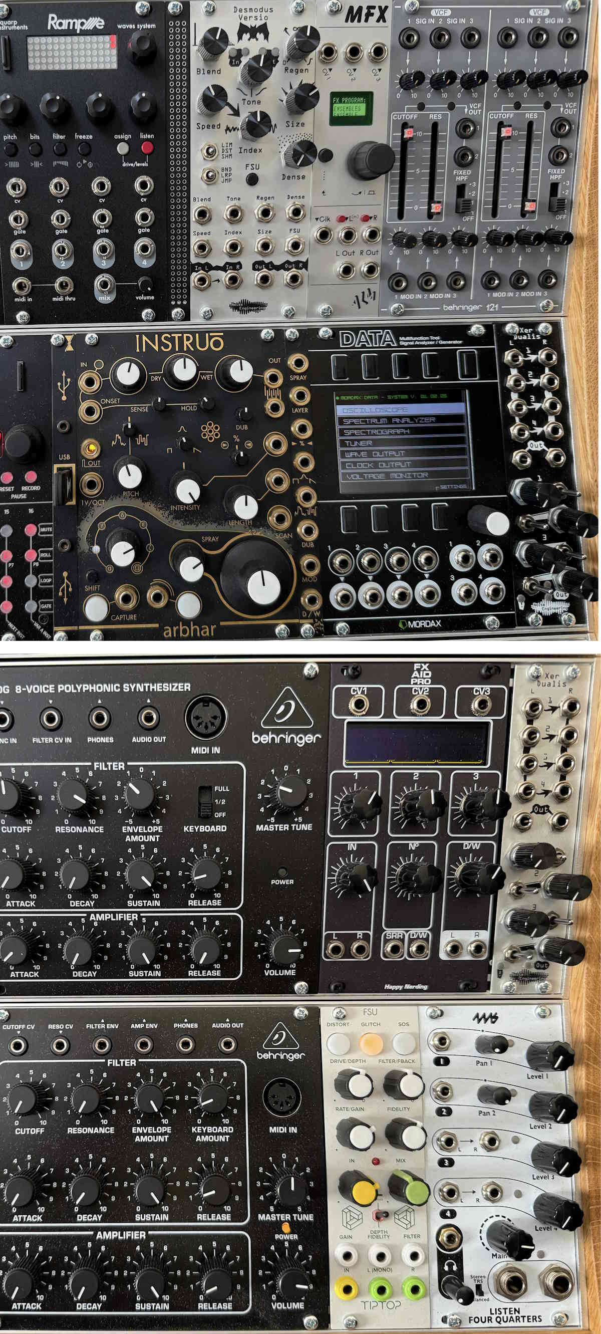 I’ve curated this system over the last 3 years to be a self generating unit with some midi synths bolted on to create a closed system. The list of modules are –