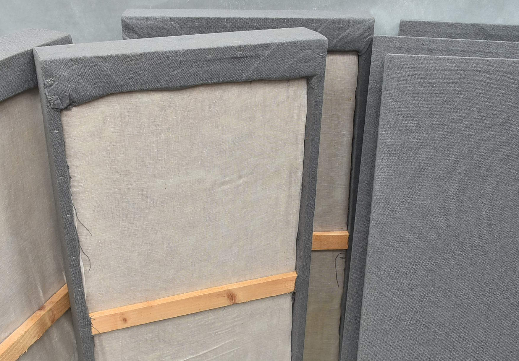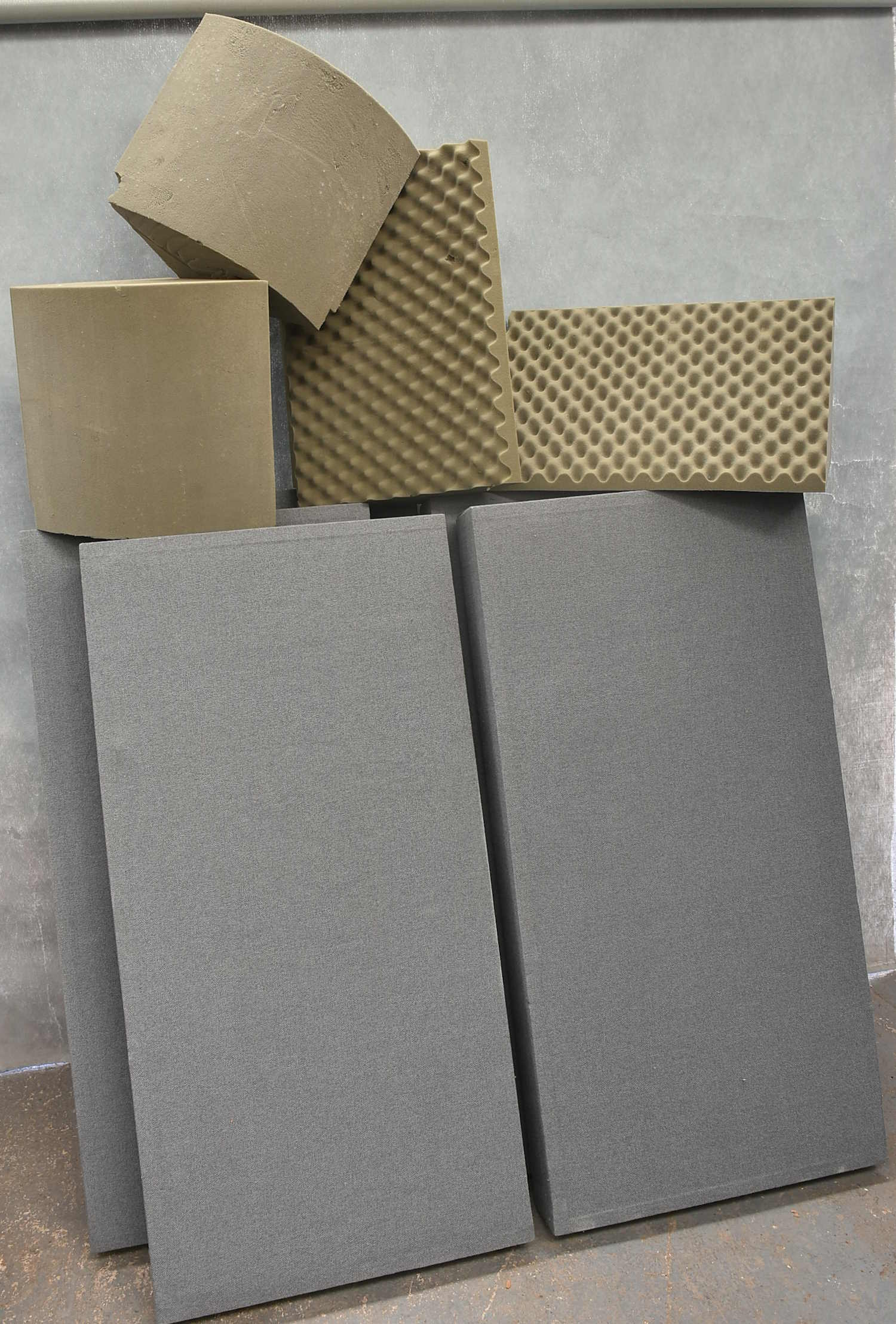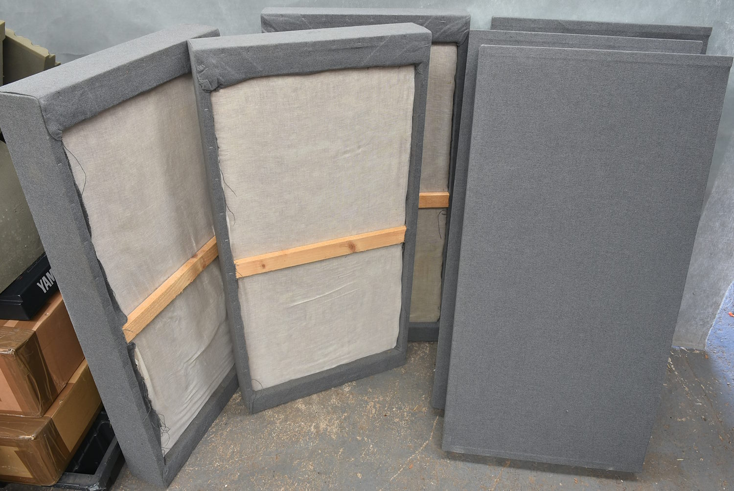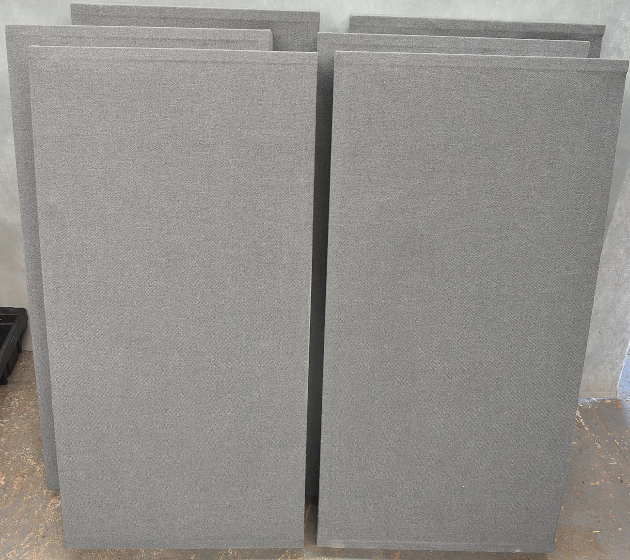 One of very many items from Calum Hunter's superb home studio. A large lot of acoustic treatment items: six large cloth-covered padded baffles (c. 120 x 60cm to be confirmed - actually 122 x 61 - four by two feet) and four large acoustic foam corner pieces. This lot was used to treat a room about 3x4 metres. We don't think that shipping is really a possibility, so they can be collected from VEMIA or we can deliver by hand within some UK areas at cost.