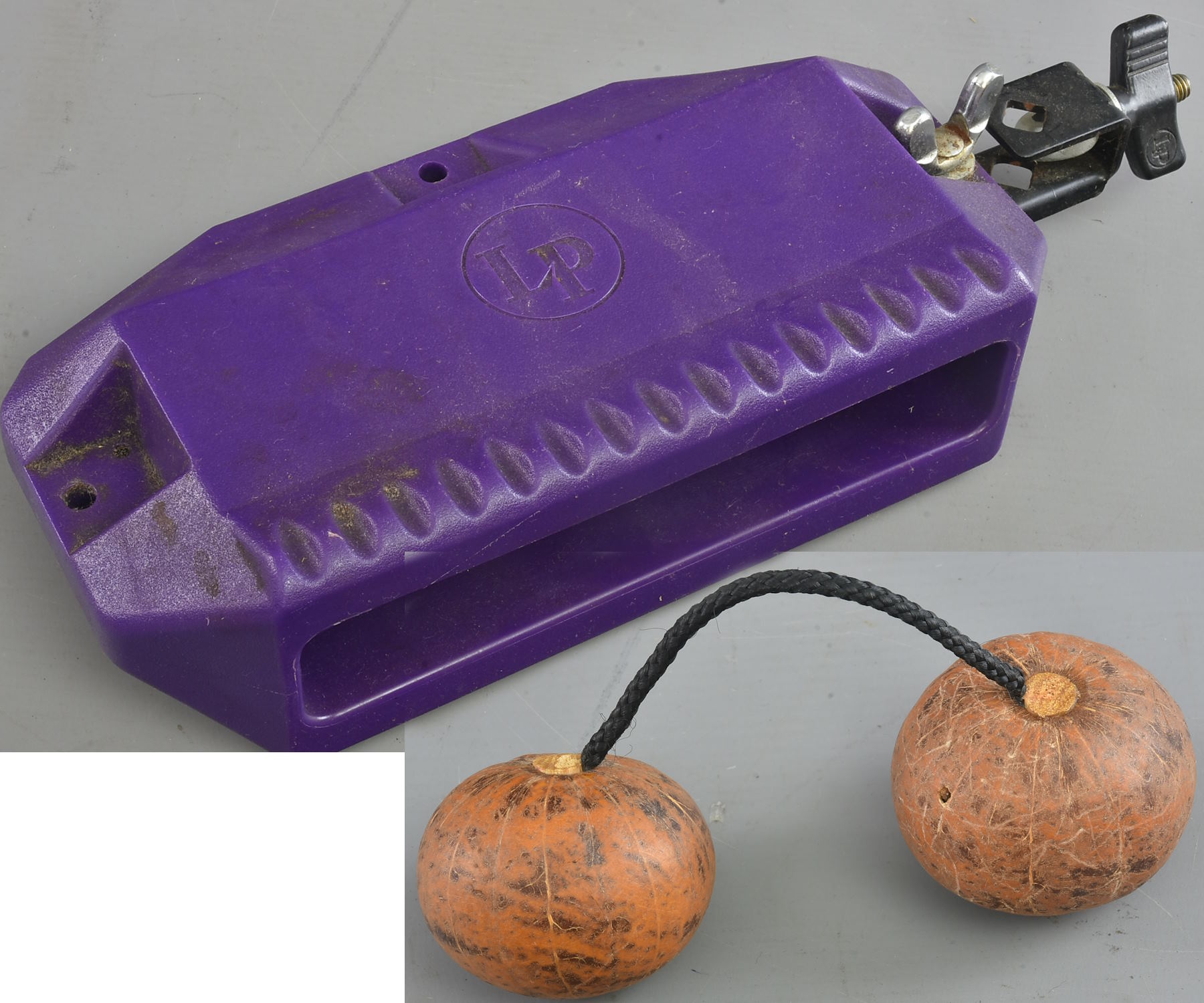 One of very many items from Calum Hunter's superb home studio. Six percussion instruments. Packing 9GBP. |