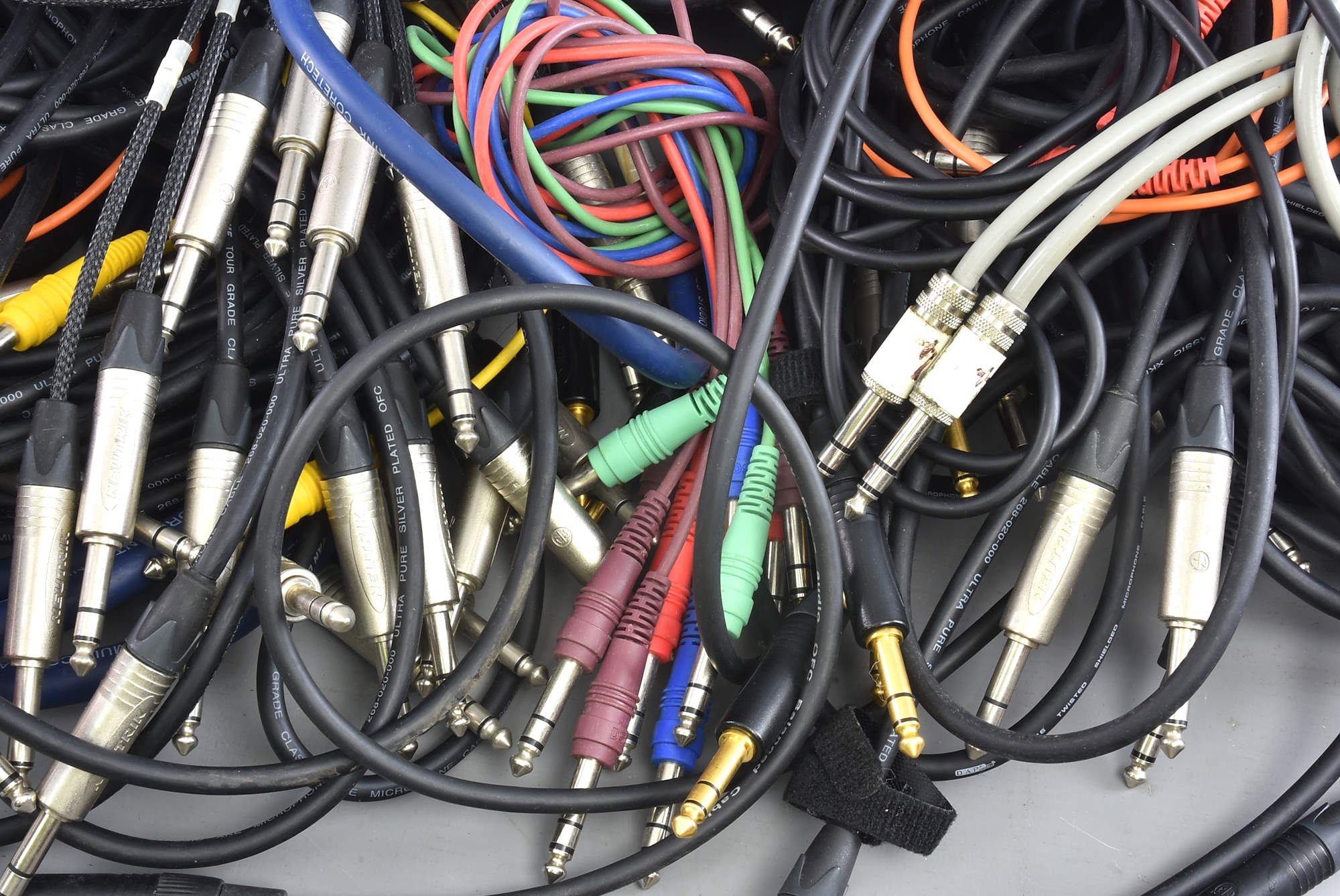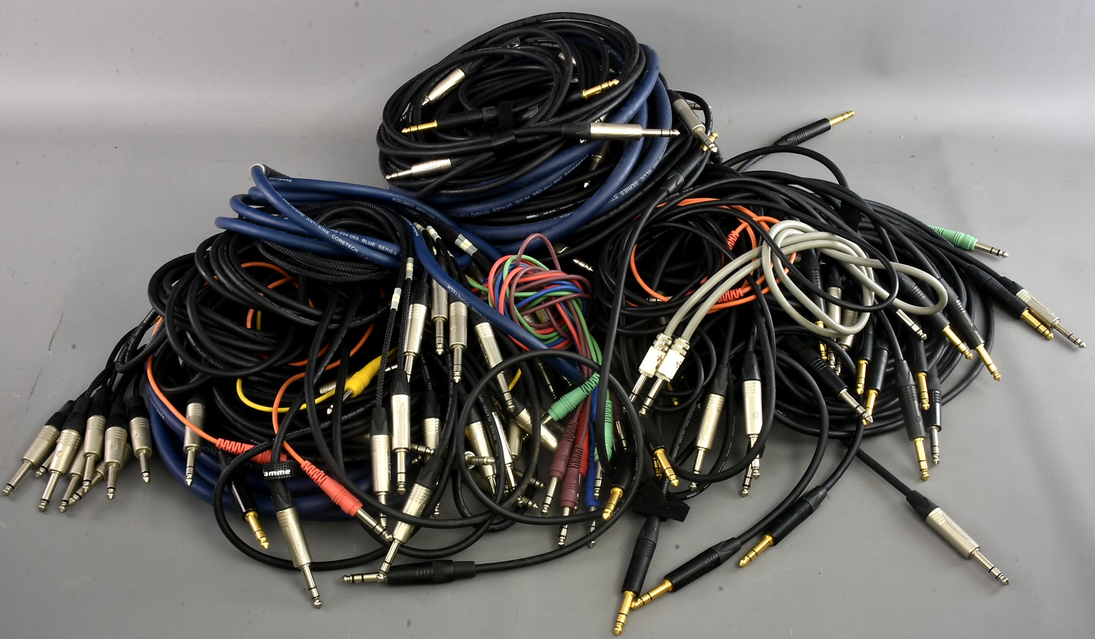 One of very many items from Calum Hunter's superb home studio. A massive lot of stereo / balanced quarter-inch jack leads, mostly of extremely good quality. Packing 9GBP. |