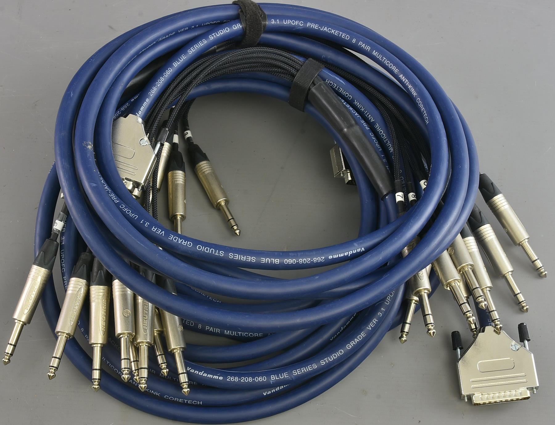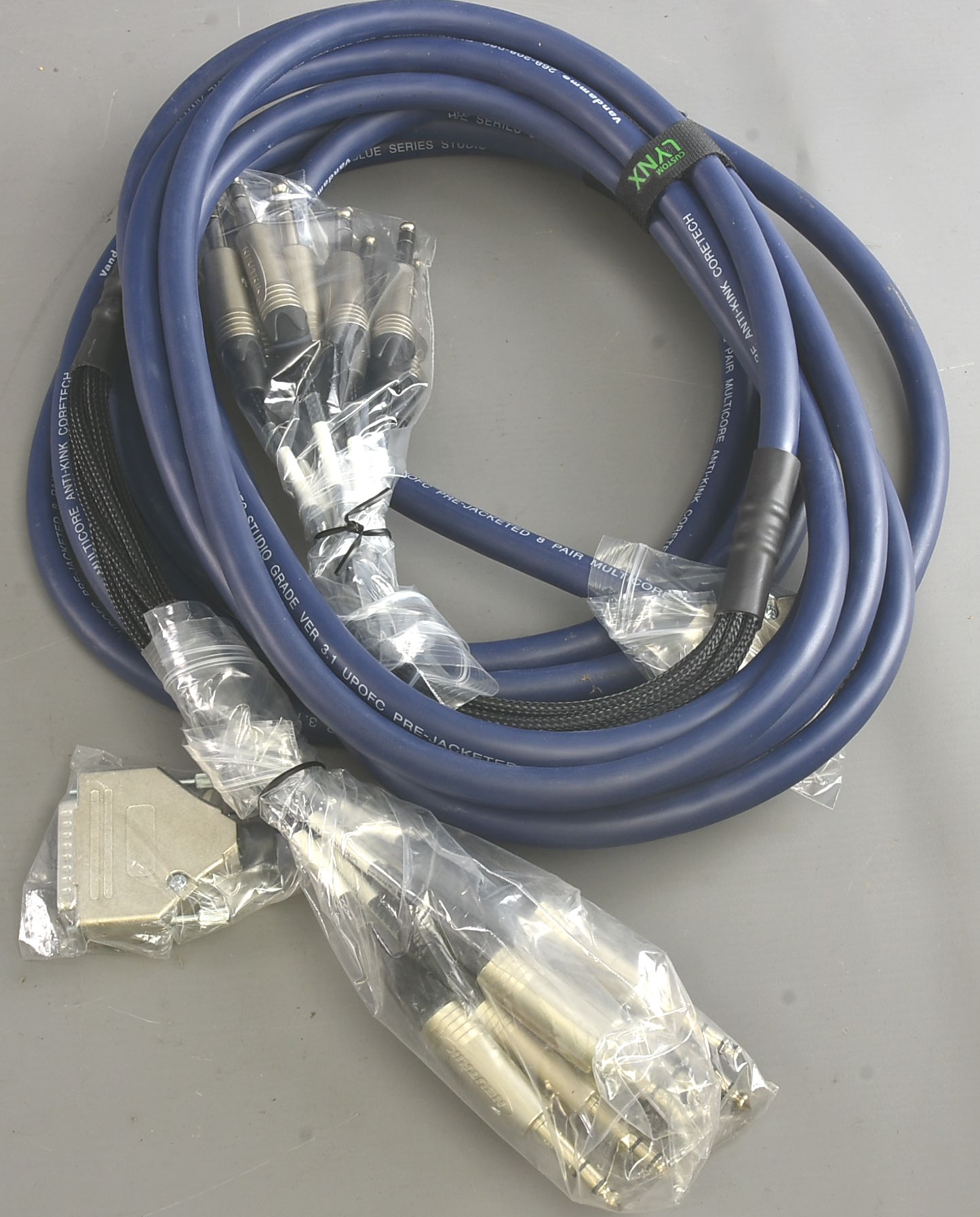 One of very many items from Calum Hunter's superb home studio. A huge lot of multicore cabling (DB25 to 1/4 inch balanced), much of it unused, and all very good quality. **Eight** of them - sorry the photos didn't make that clear! Packing 9GBP. |