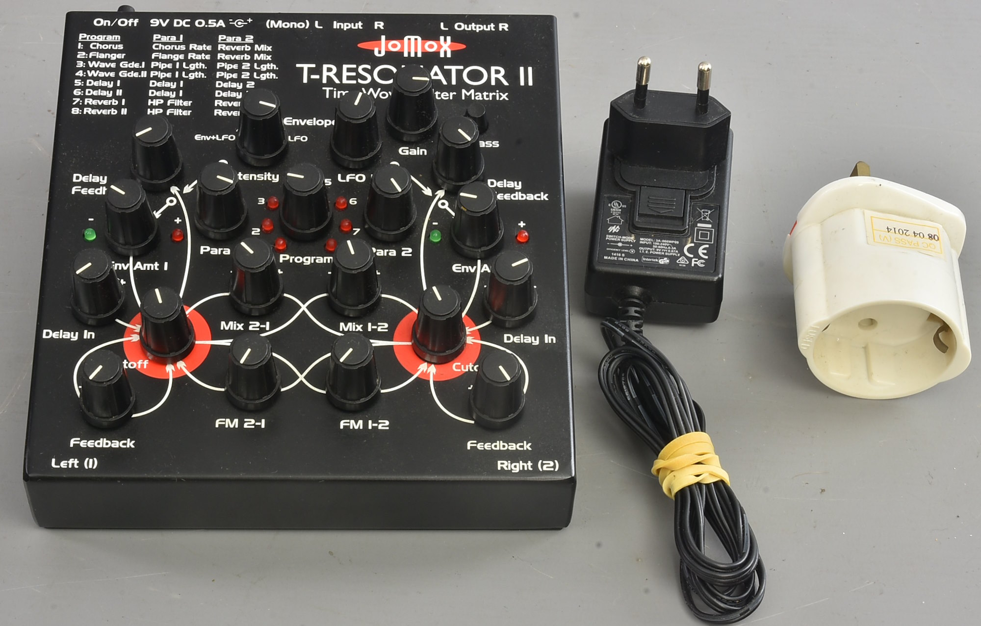 One of very many items from Calum Hunter's superb home studio. Interesting complex filterbox / delay. With European two-pin external power supply, and if needed UK adapter. Not tested yet - more details when known. Packing 6GBP. |