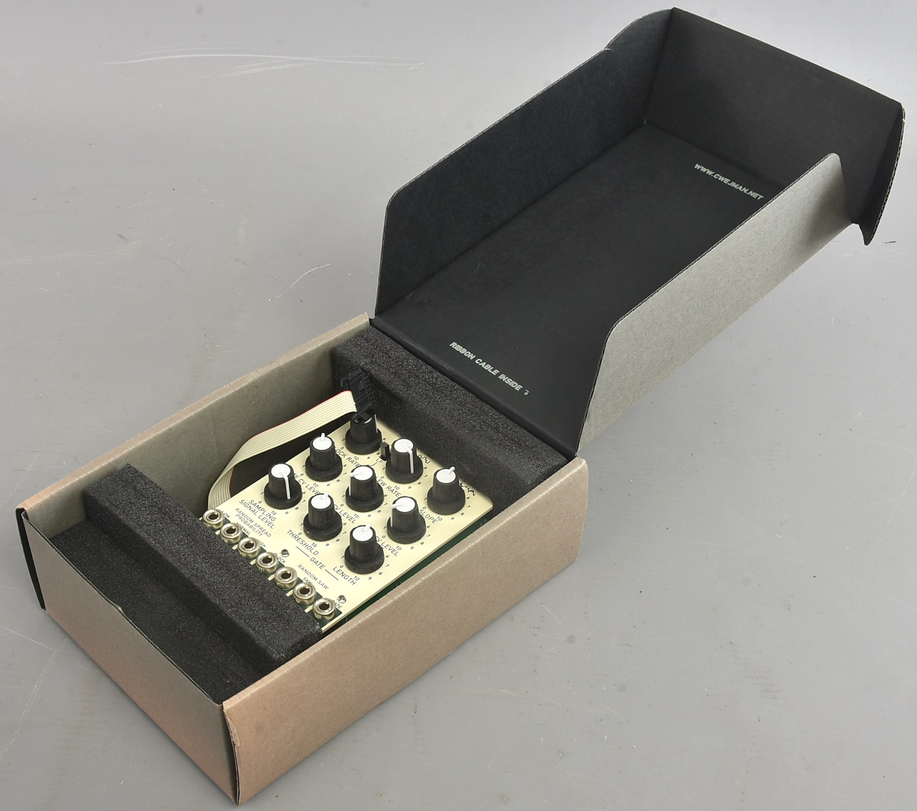 One of very many items from Calum Hunter's superb home studio. Boxed, looking unused. With its original box and ribbon cable. This eggshell version is not in Modulargrid. We'll cover the box with card: 3GBP. |