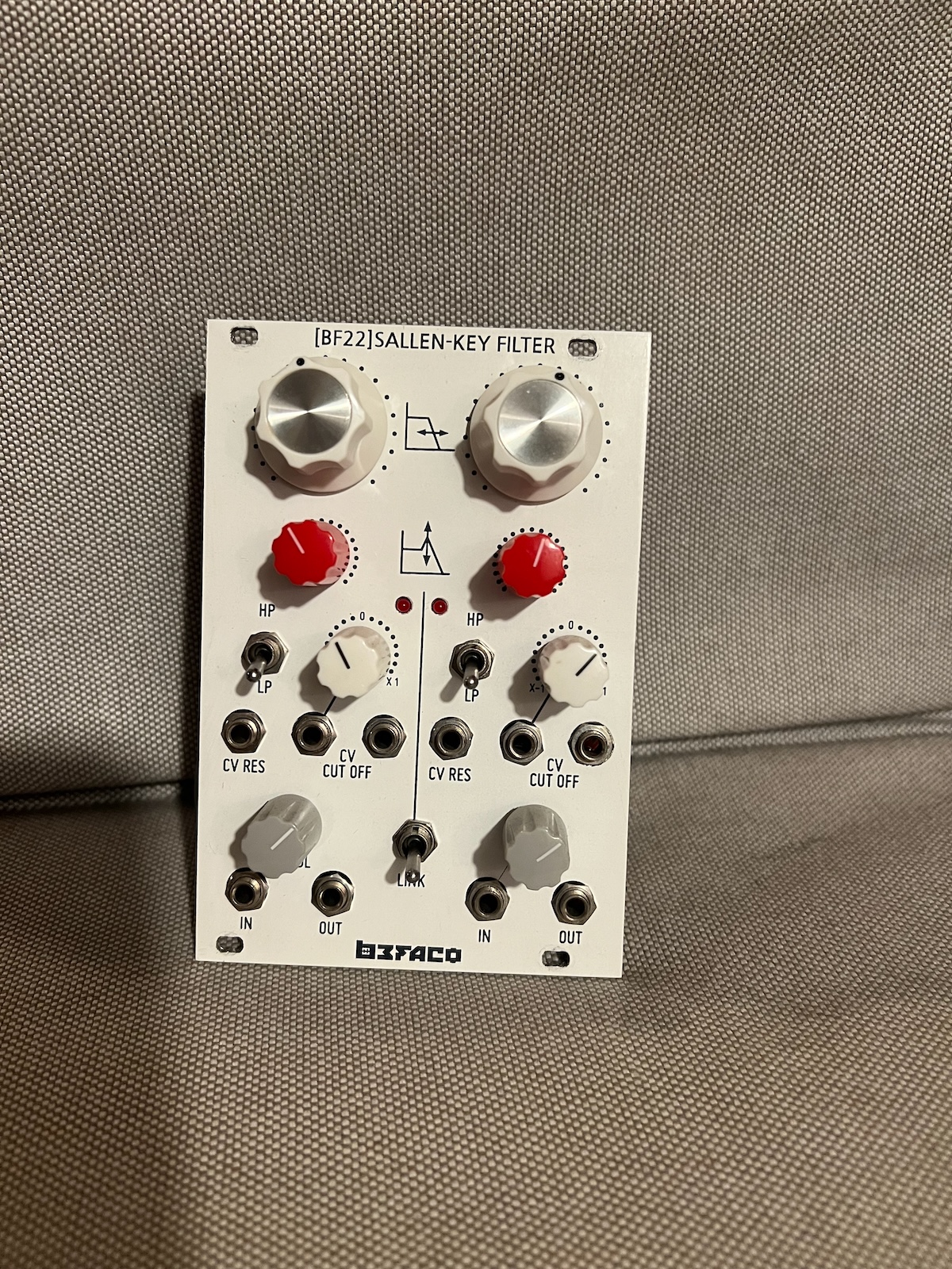 The BF-22 VCF is a dual Hi/Low-pass filter inspired by the Sallen-Key filter from the early MS-20. |