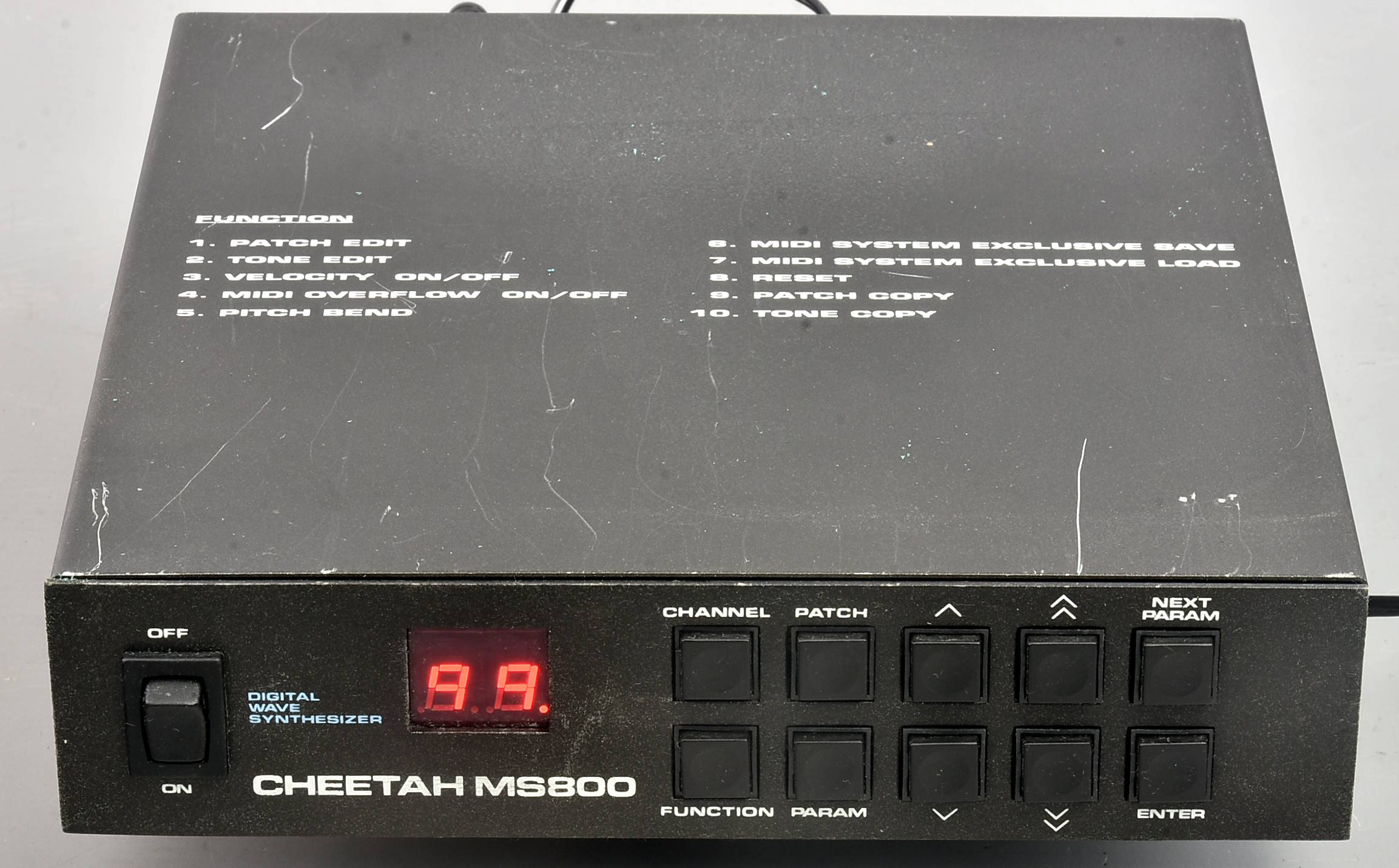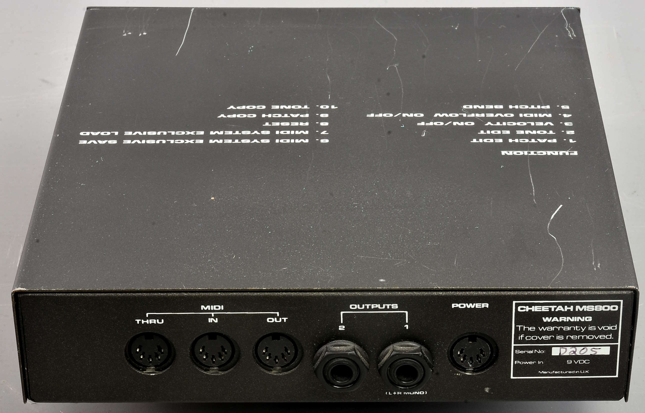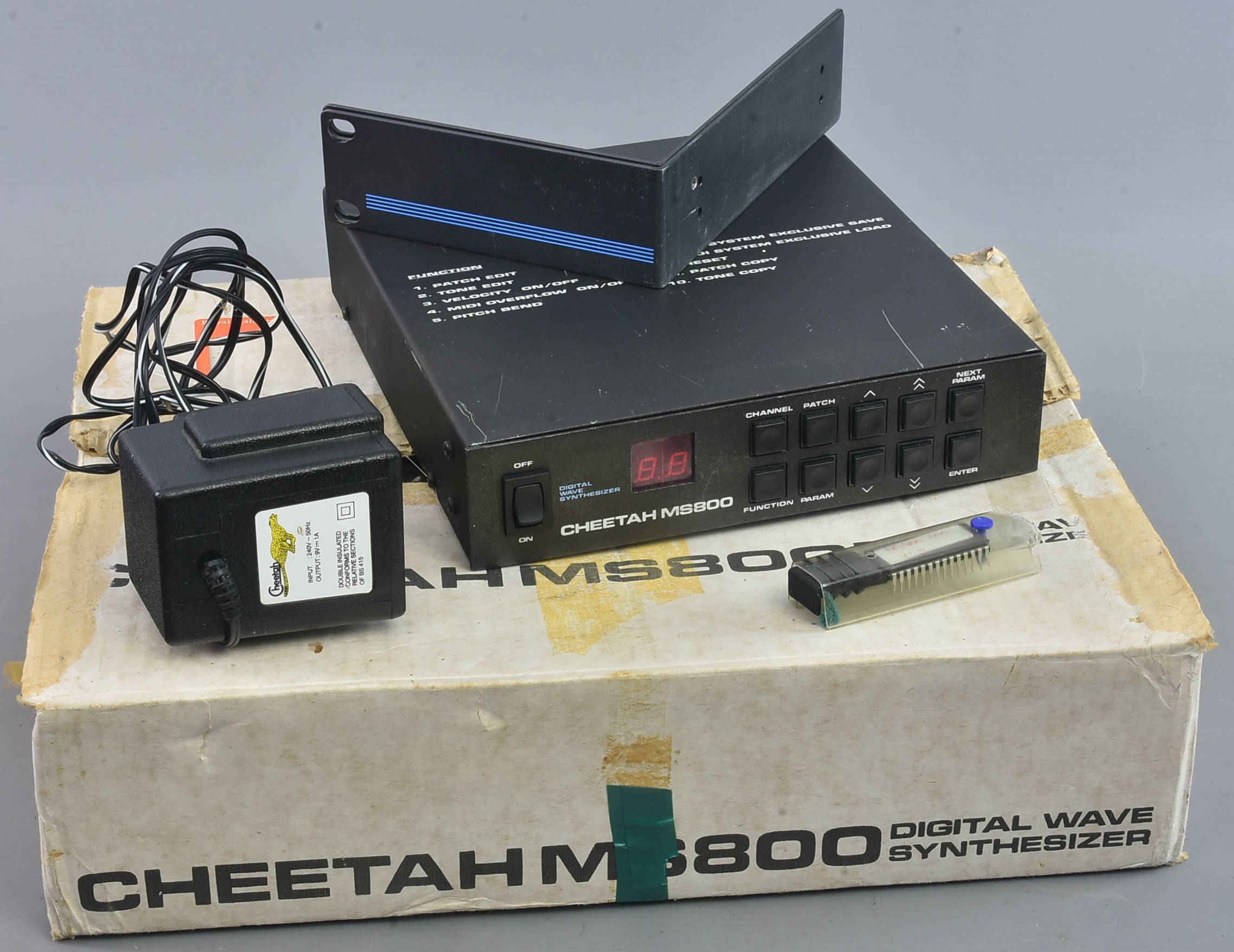 Rare digital synth module. With original power supply, rack ears, MS800 Prog v.1.0 chip, and boxed - but no inner packing (it had disintegrated). All a bit tatty but potentially very interesting. Not tested yet, so sold as seen - more details when known if time. ***Briefly tested today: it works, producing characteristically harsh / vicious tones - pretty unforgiving in themselves, but of course able to be the basis of something completely different once treated / effected. Some of the higher program numbers seem to have a ticking / clicking on them.*** Apparently 'As used by Aphex Twin on his [then] latest release Cheetah!' according to a Reverb listing from nine years ago. Packing 6GBP. |