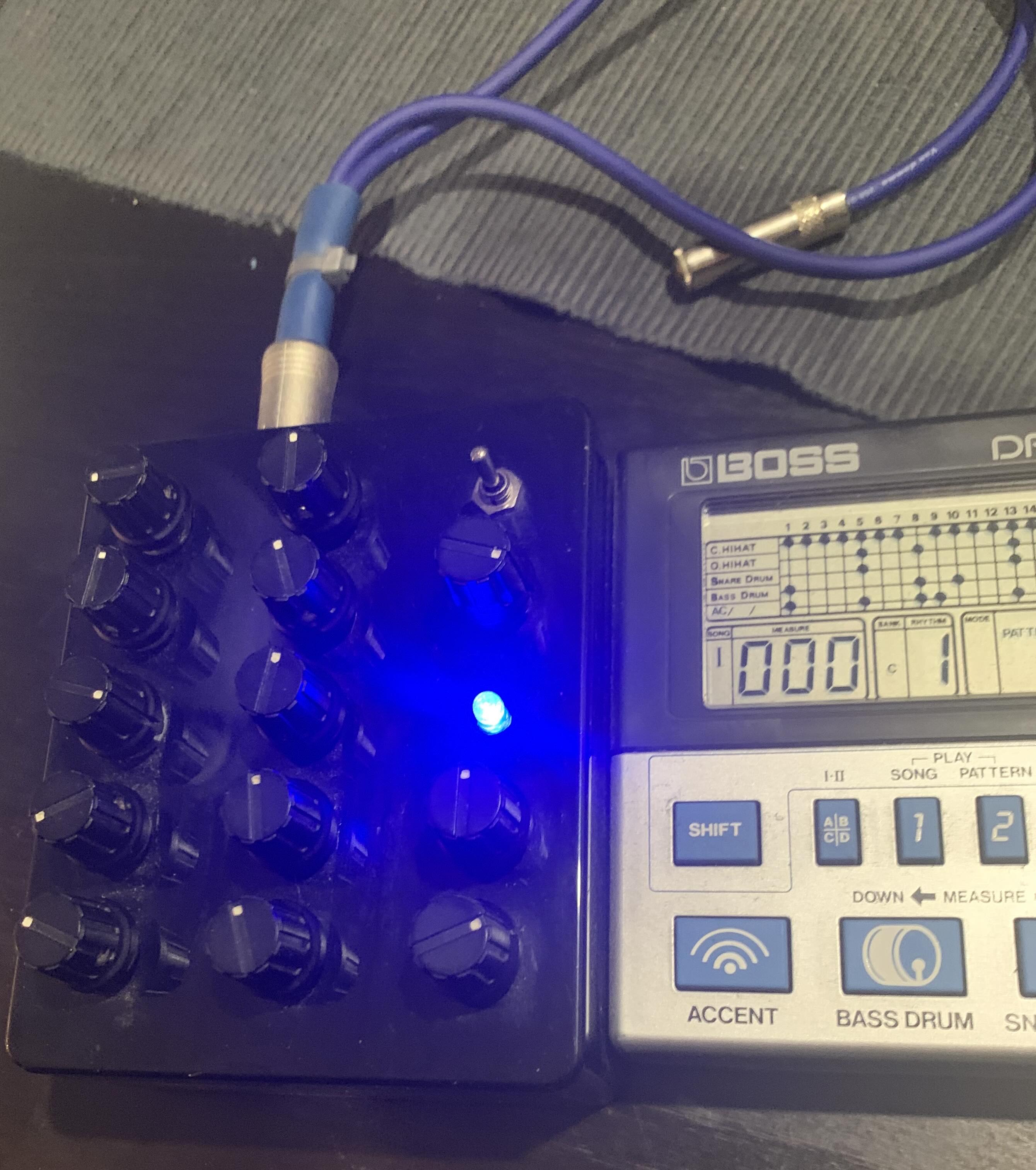 Also now with the dinsync (both in and out with the help of a switch on the modbox) now this drum machine can be synced to the rest of the studio