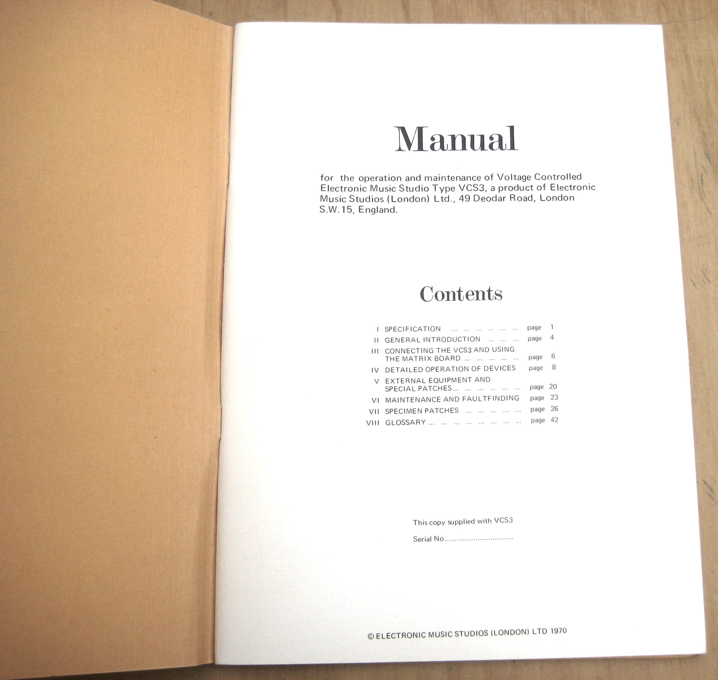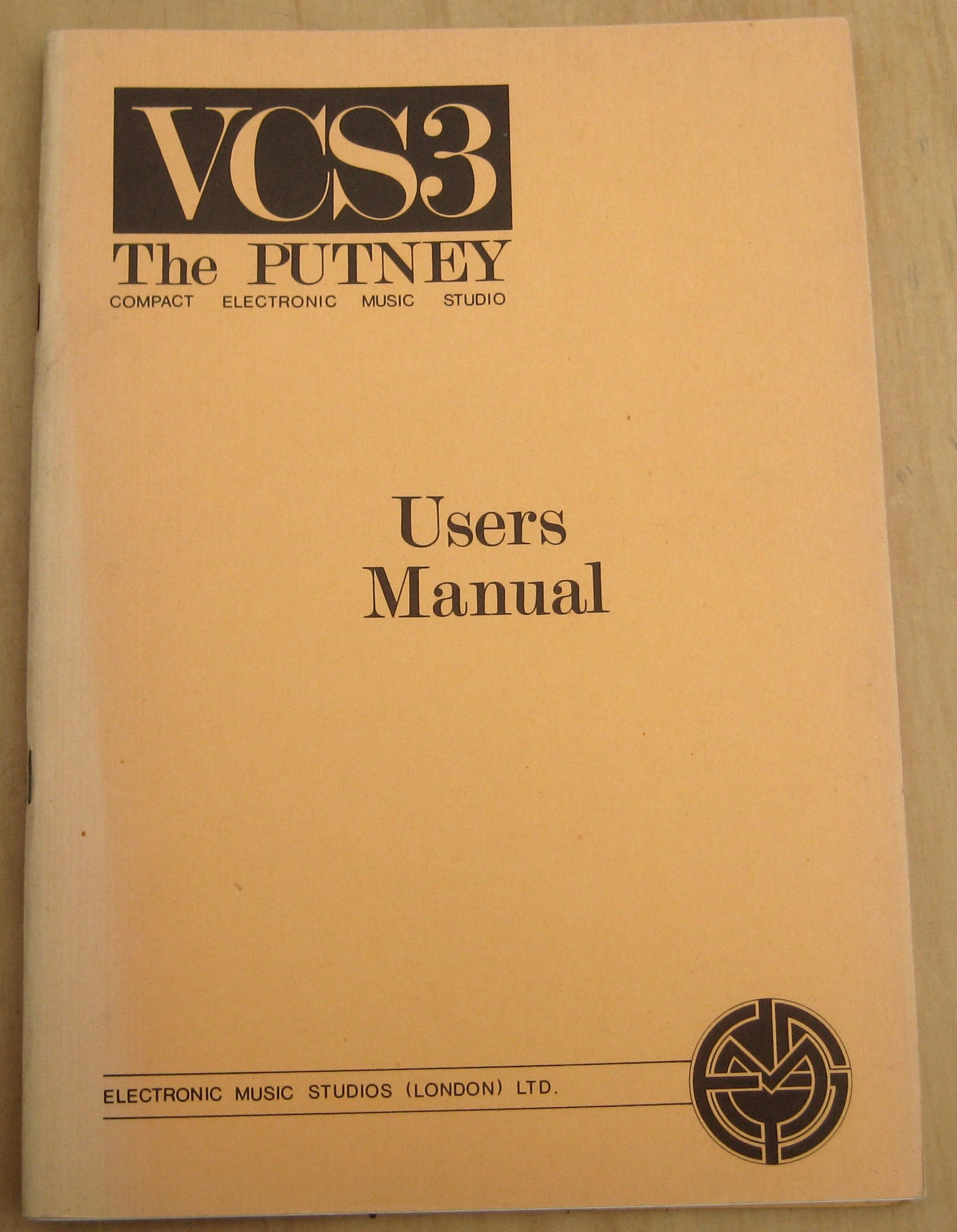 1) Original yellow VCS3 Mk1 manual by Tristram Cary. With 15 sample patches. Very good condition. |