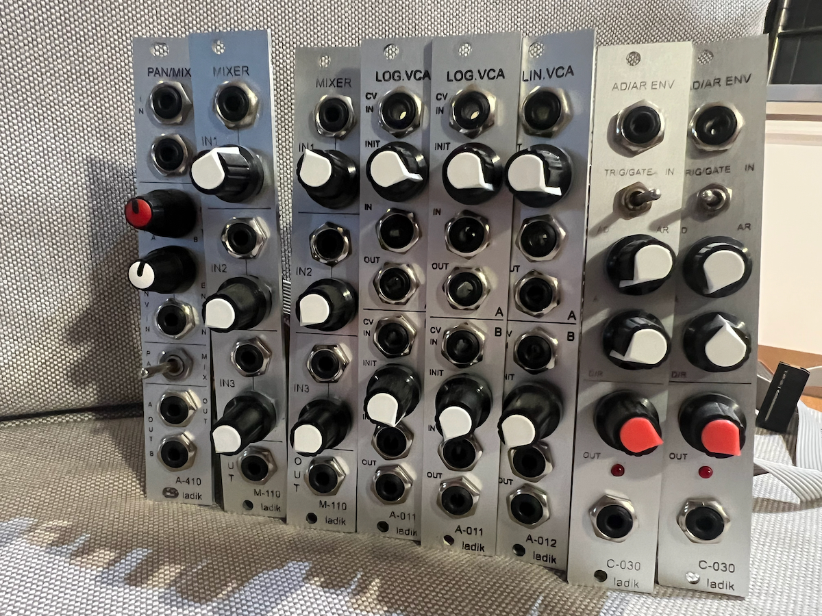 2x C-030 AD/AR Envelope + 2x A-011 Dual Log.VCA + 1x A-012 Dual Lin.VCA + 2x M-110 Mixer + 1x A-410 PAN/Mixer |