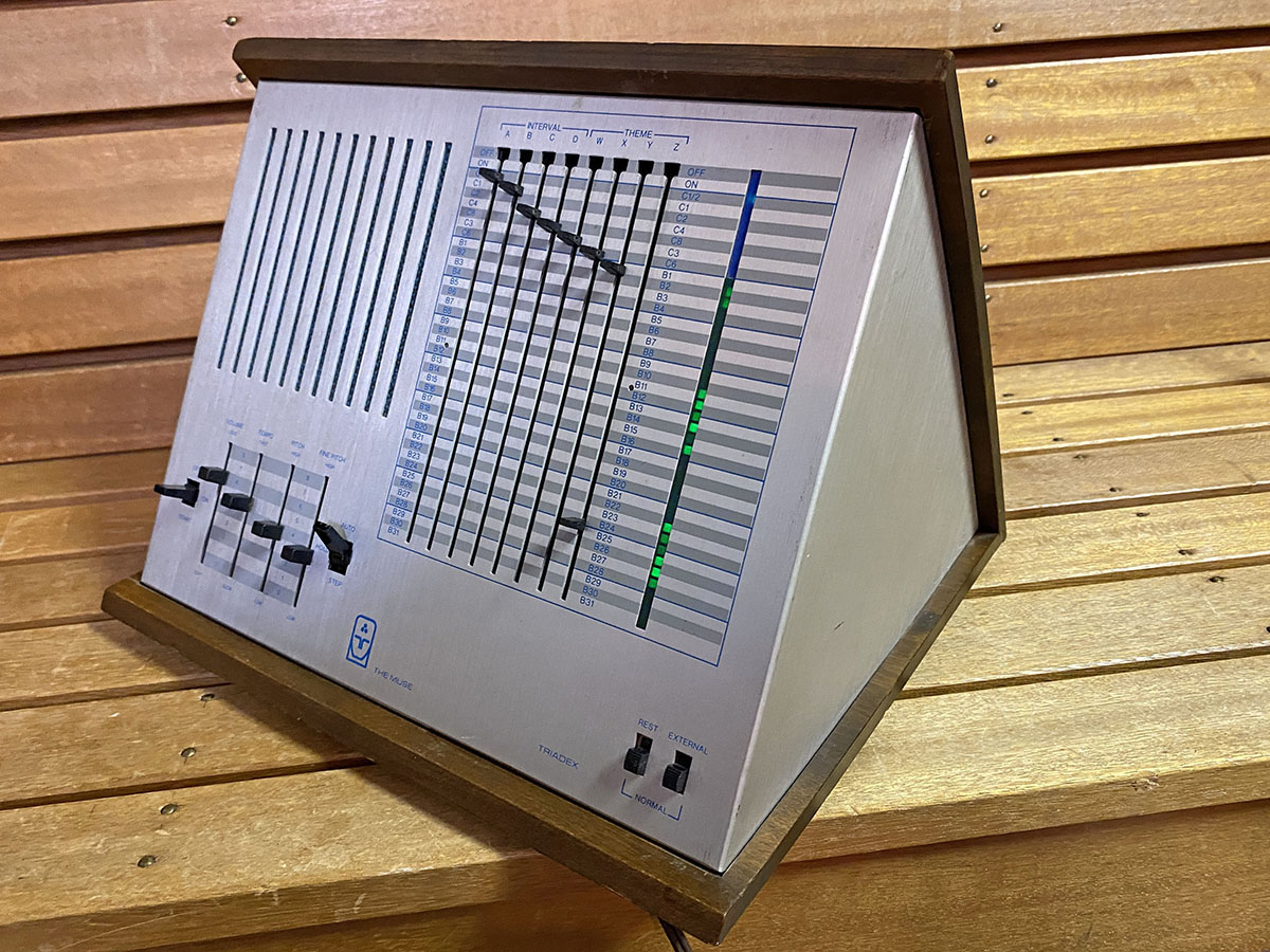 This could be called a 'Muse Project' as what is on offer is a Triadex Muse that is partially working. All the controls appear to work fine, and the groovy spacy green flashing LED display responds to Start, Stop, changes in tempo and other settings. The sole problem is - there is no sound, except for some clicks when the REST switch is turned on. These clicks also respond to tempo changes and other settings, indicating that the internal oscillator may not be completely out of action. As a fairly primitive early 70s device with a simple oscillator, it may well be possible to bring this fascinating instrument back to life.