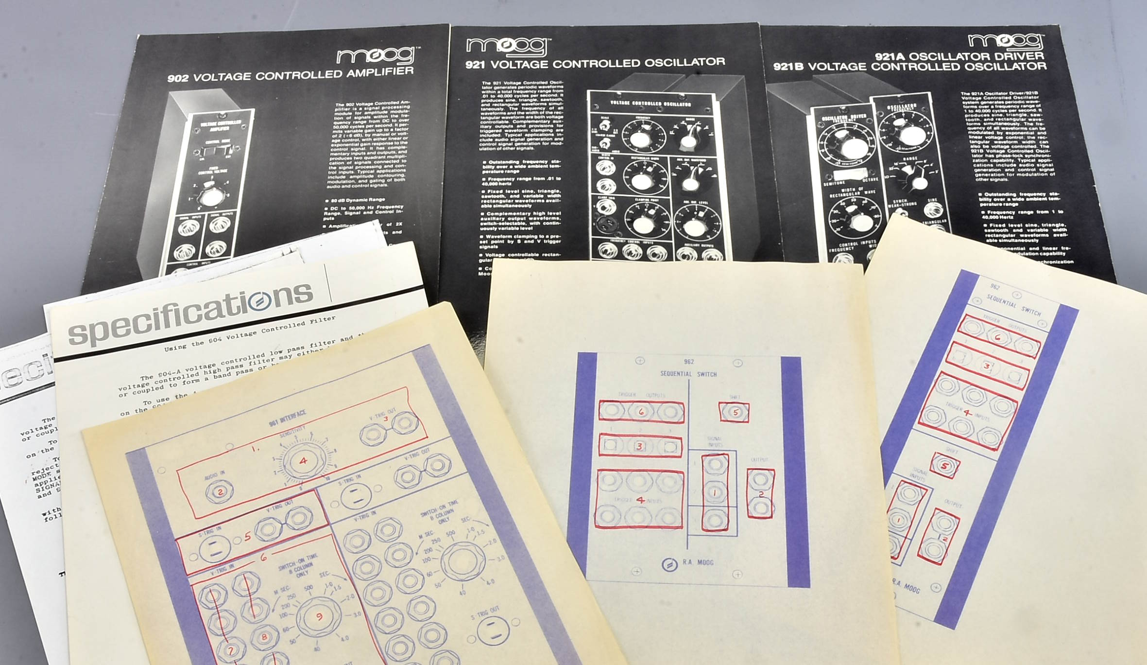 I can't remember who or where I got this collection of paperwork from - possibly Tom Rhea, possibly a US university - but it is a very nice mix of some original and some photocopied material about Moog modulars. Some very interesting stuff. Packing 3GBP. |