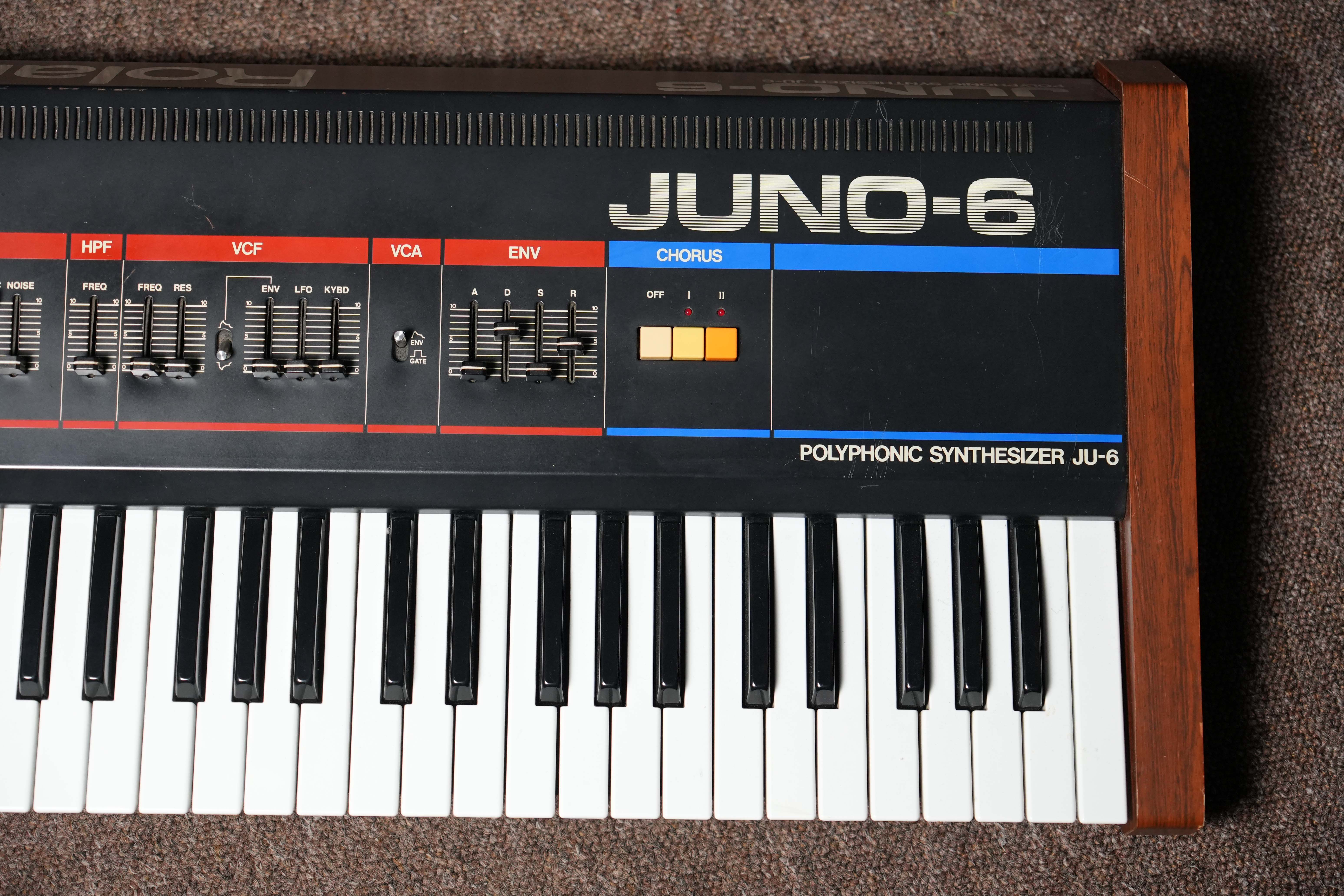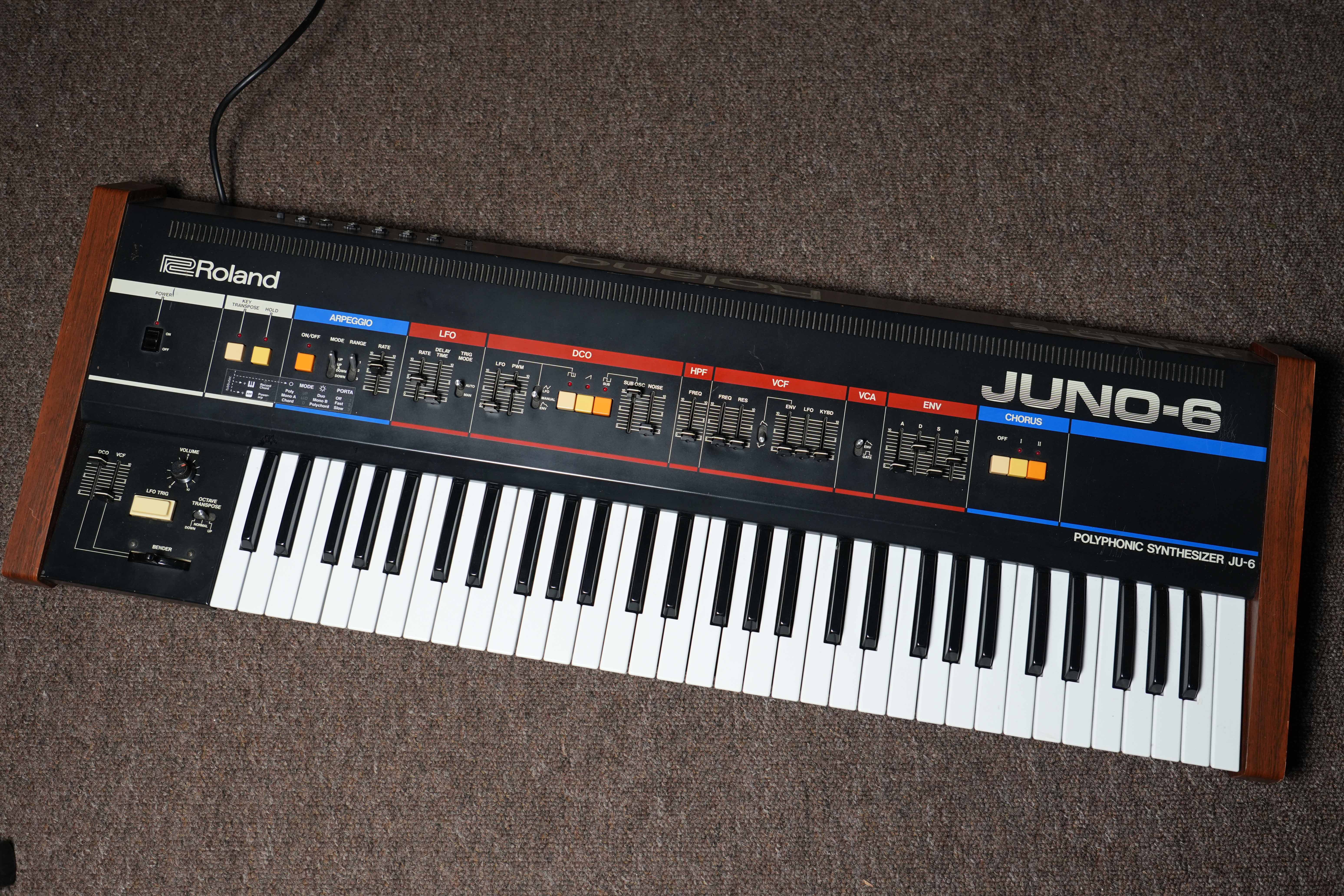 A classic and fully operational Roland Juno-6 from June of 1982.