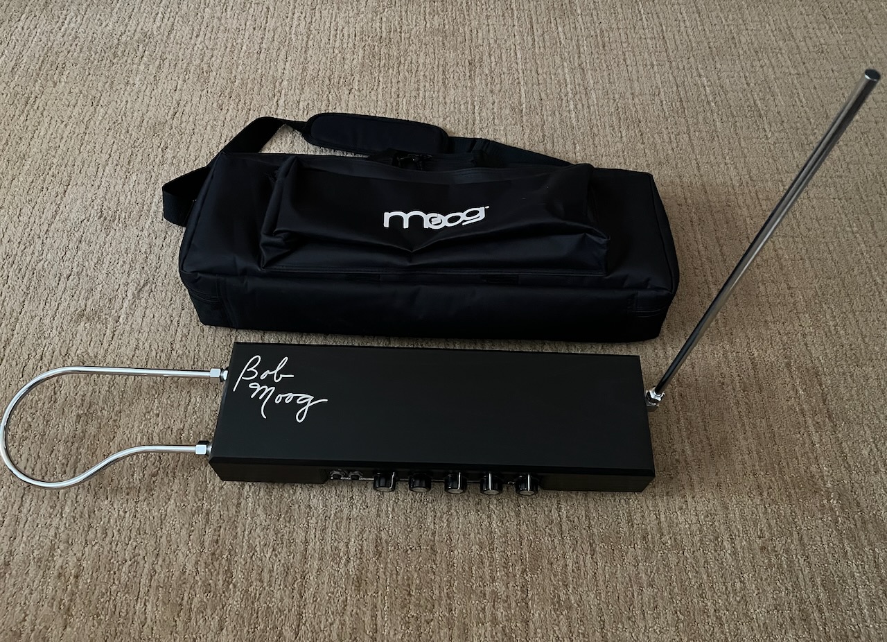 It includes the power supply, manuals, and a Moog Theremin gig bag. I have the original box, but it has seen better days. I can include it if the buyer desires. |