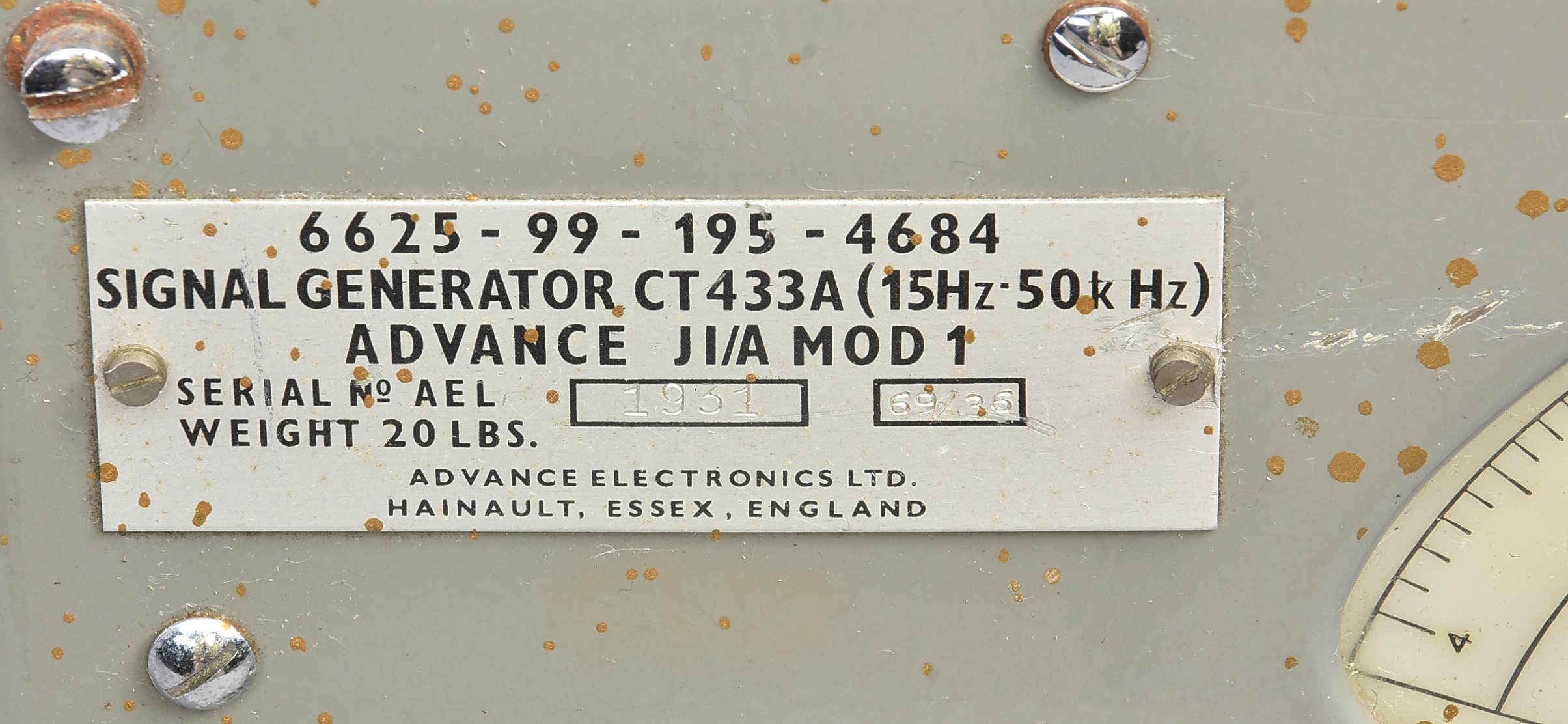 Vintage Advance J-1A signal generator – tatty but working. I've had this for many years but now, living in an off-grid house with no mains electricity, I've been storing it instead of using it.