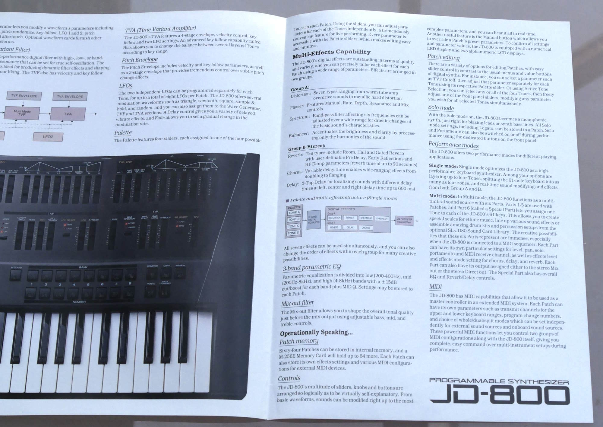 Very nice condition original brochures / leaflets for the Roland JD-800 and TR-505. |