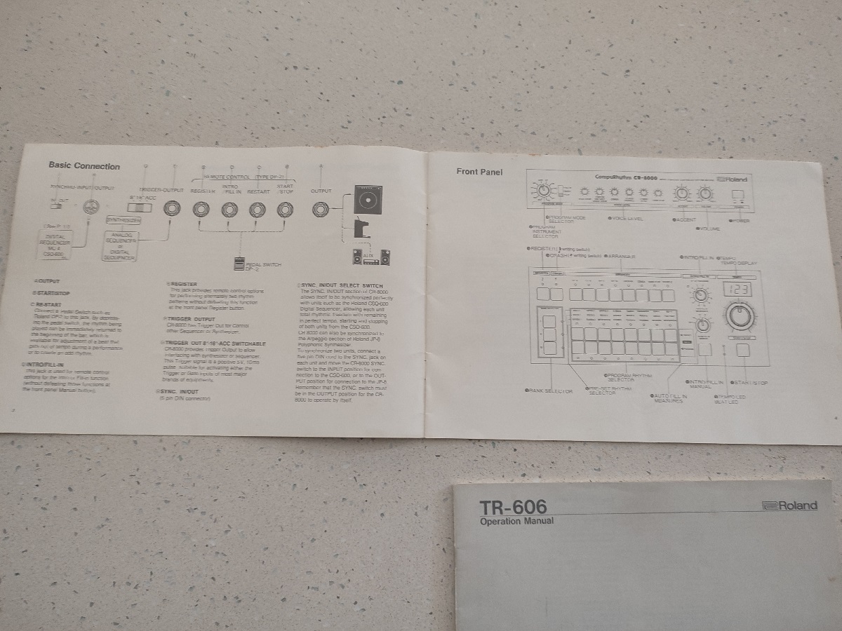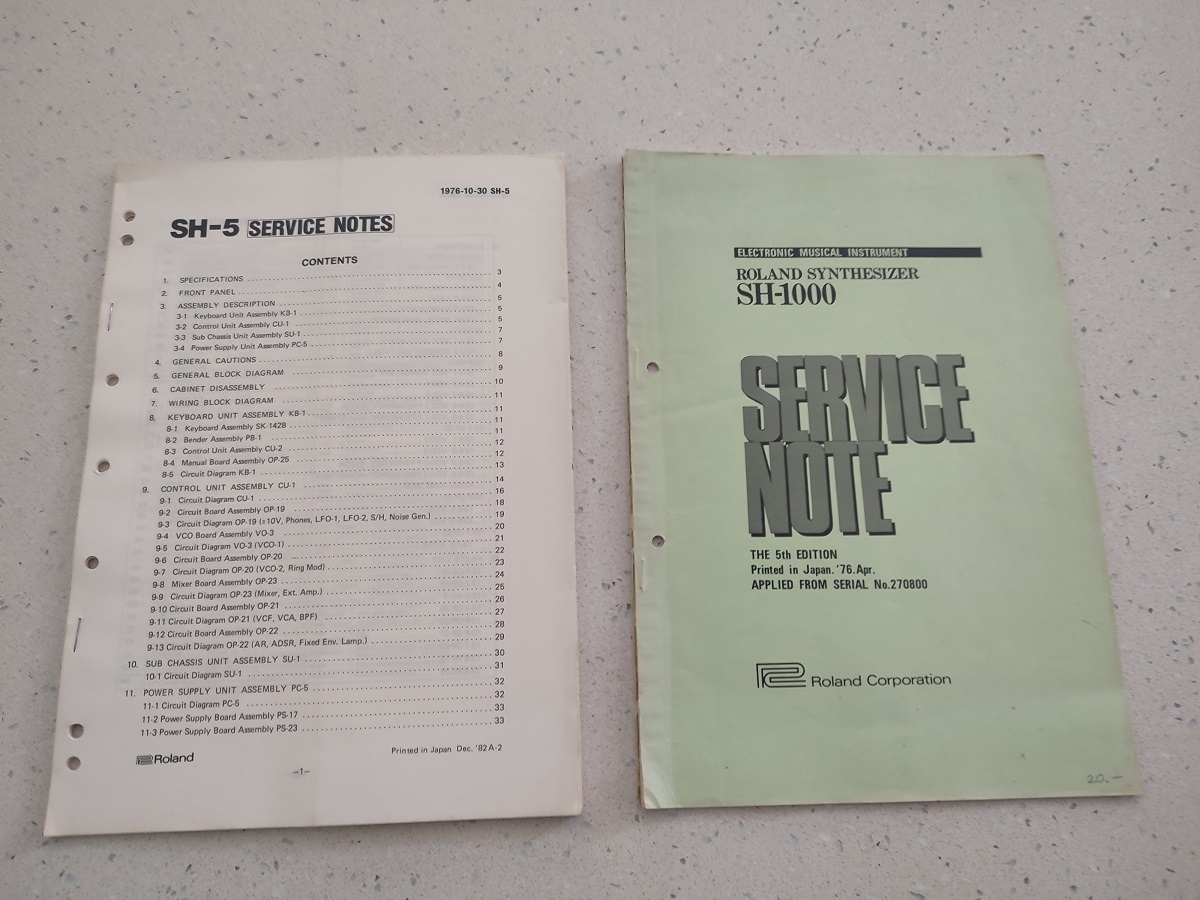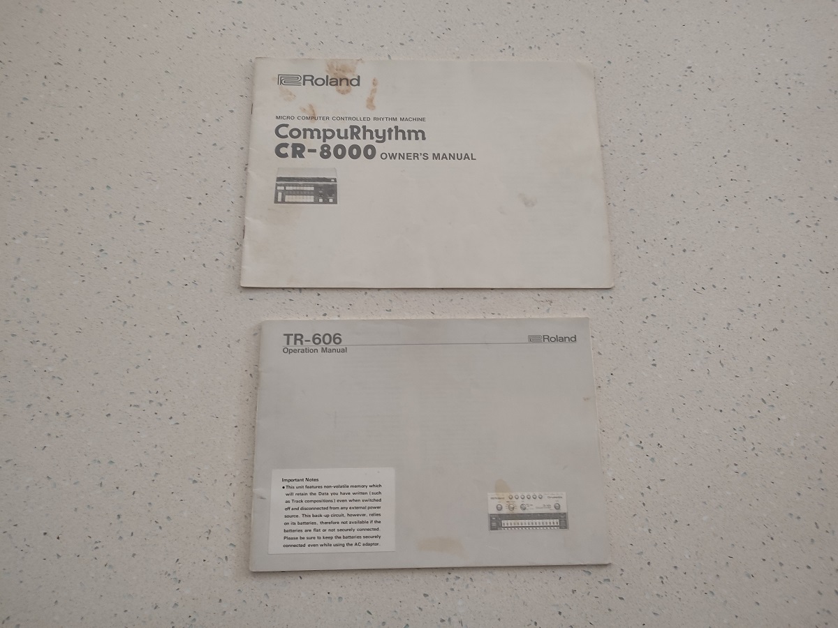 Roland SH5 and SH1000 original service maual and TR606 and CR8000 user manuals. The SH5 and TR606 are in mint conditions and the SH1000 and CR8000 in very good conditions. No marks, all perfect. |