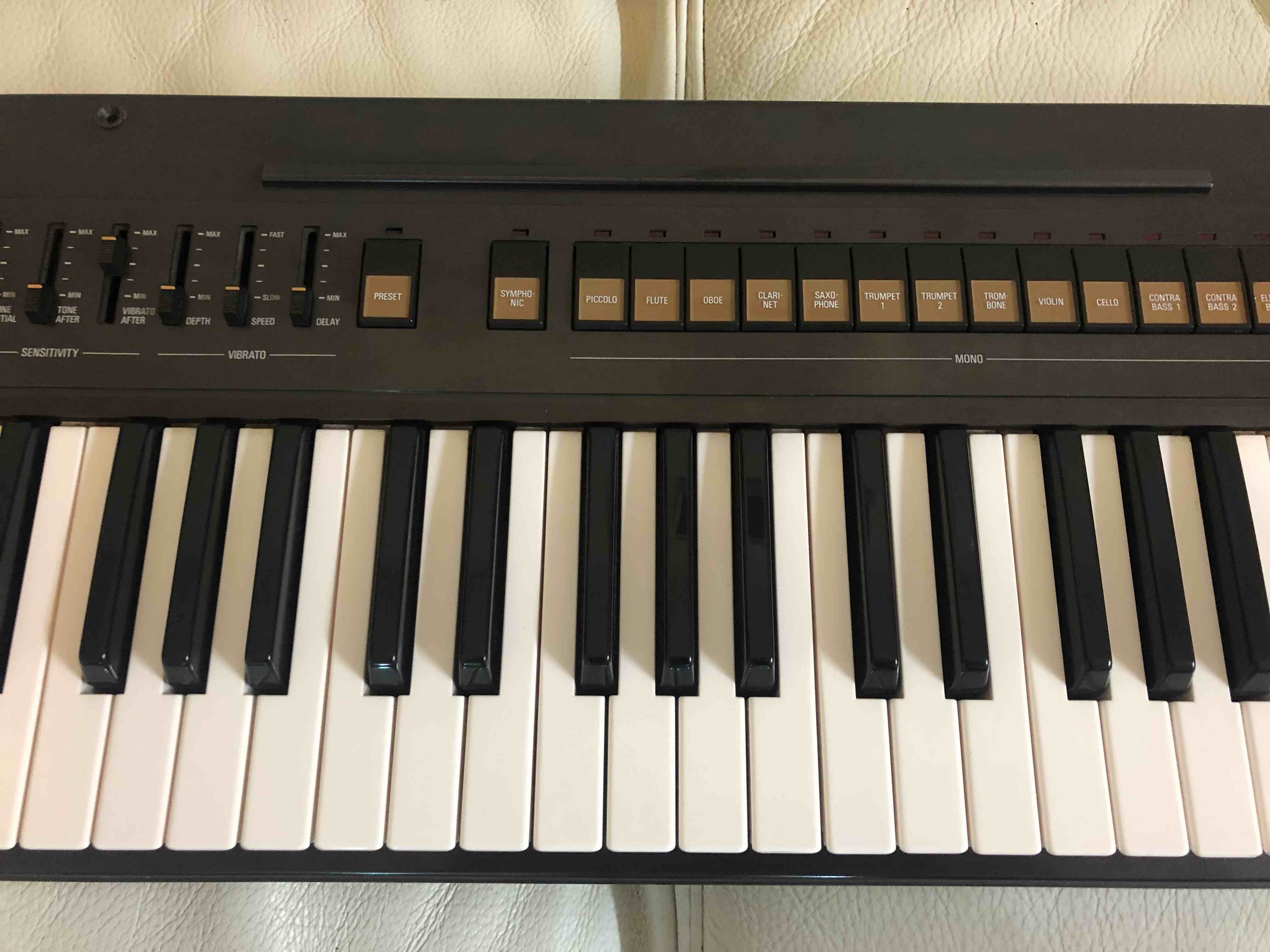 here im selling a very rare yamaha ce20 FM Mono / Poly Preset Synthesizer with extensive performance control and aftertouch . made famous by kitaro who used it on almost all his albums . its considered to be one voice of the mighty gs1 fm synth long beofre the dx7 . in addition its also has 8 voice fm string synth piano hapsichord and brass with ensemble chorus style . its in very good condition for its age . in perfect working order .