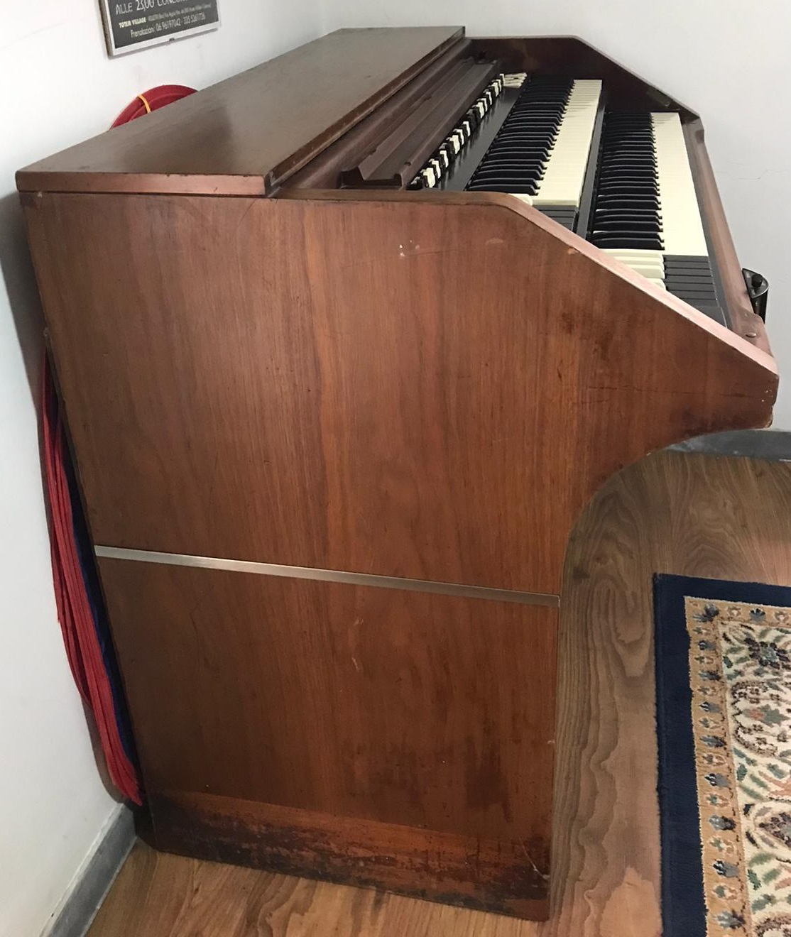 Pedalboard, bench, bass pedal contact assembly and top lid are missing.