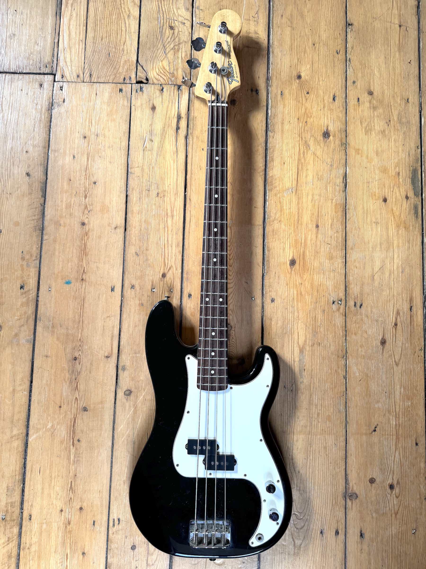 Mexican-made Fender Precision bass. I believe it dates from 1991 (please check for yourself) which is generally considered a very good vintage. Great, solid guitar with a growl if you need it. An essential for any studio. No issues. |