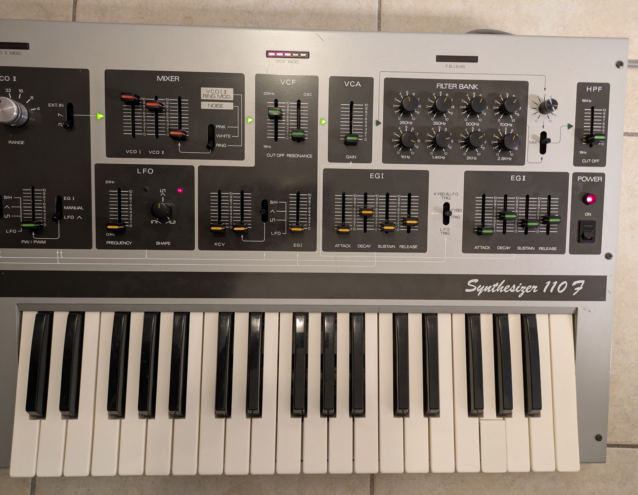 One key repaired. Three knobs are not original. One slider slightly bent.