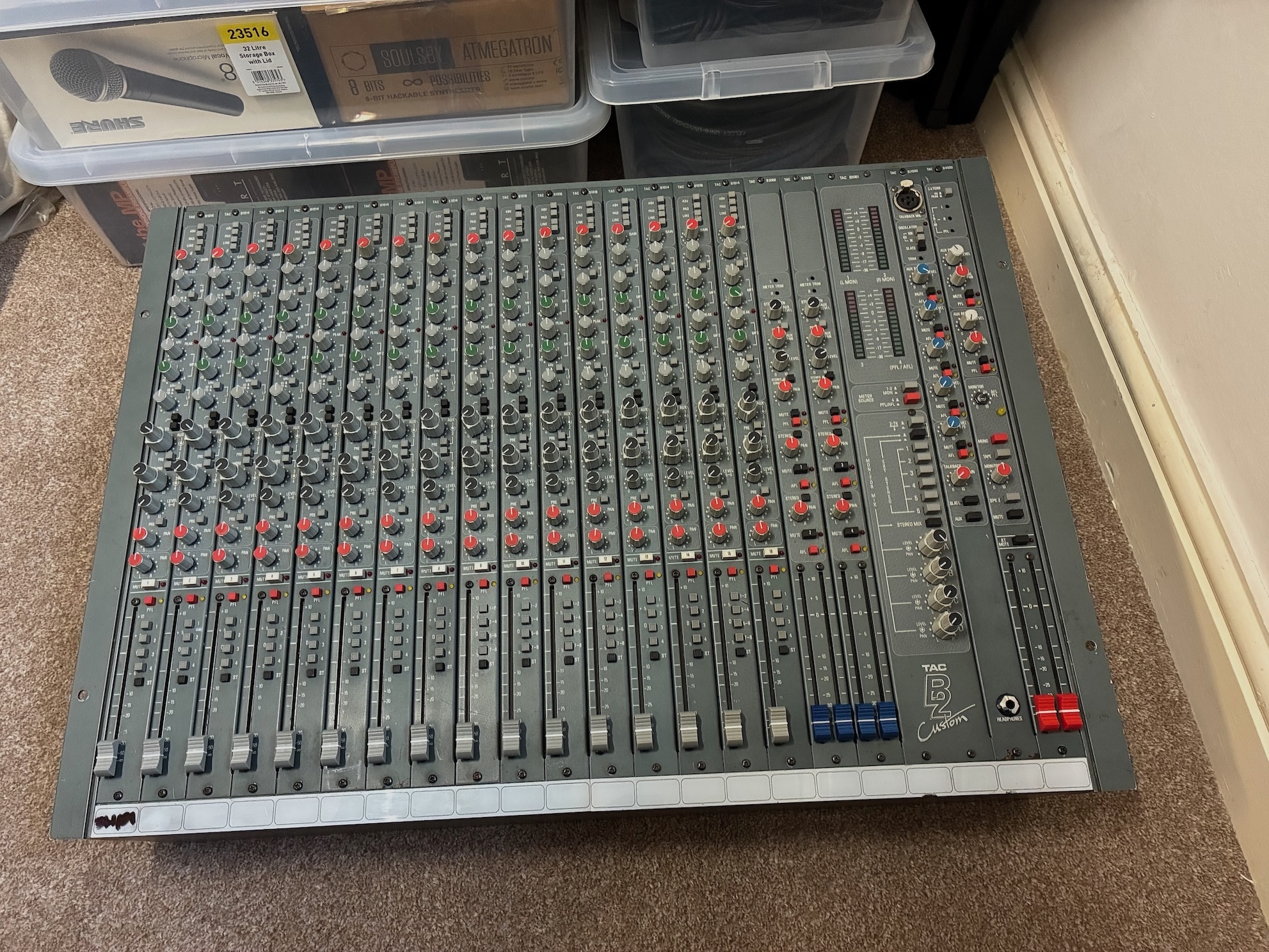 AMEK/TAC bullet 16 channel desk with external PSU, the desk was fully recapped a couple of years ago however the desk has been in storage since, and no way to test so sold as is.