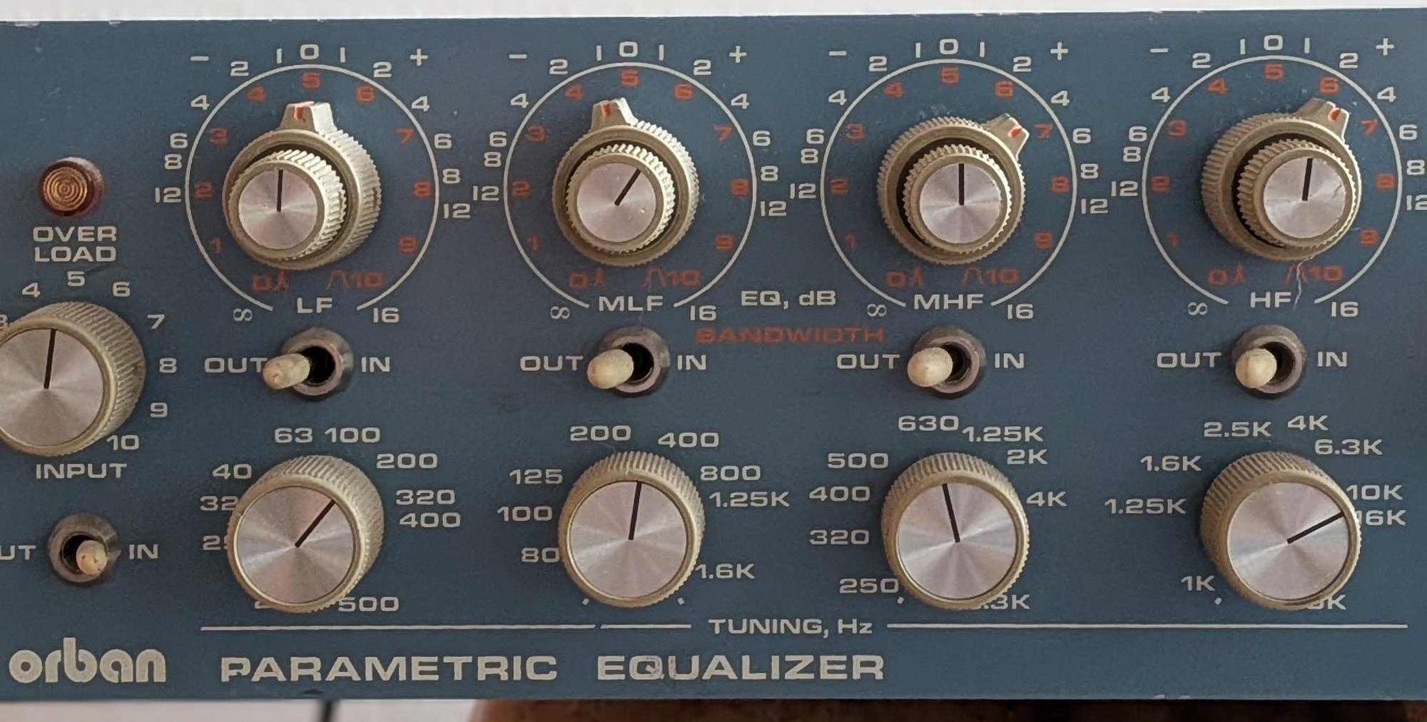 Orban 622B dual 4 band parametric EQ in full working order, flying XLR in and outs. VEMIA can collect and pack: 12GBP. |